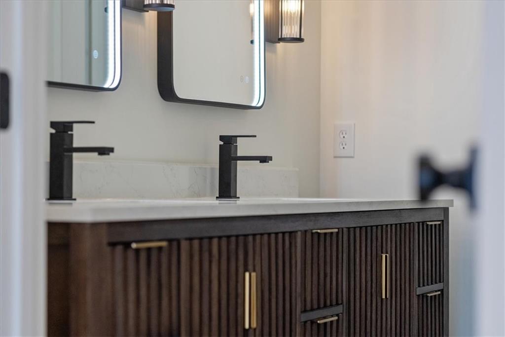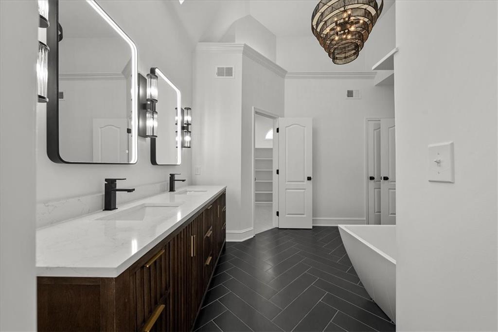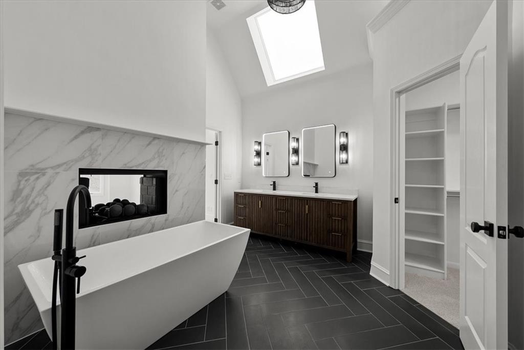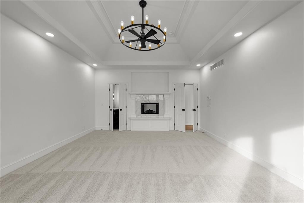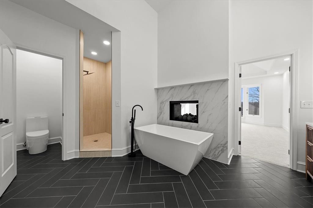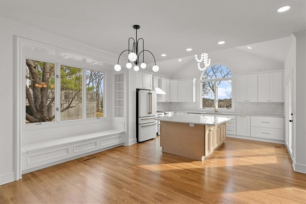 This stunning home in coveted Leawood is sure to impress! Once you enter, you're greeted by a sweeping staircase and vaulted ceilings throughout most of the home. All the rooms are extra large and everything has been beautifully updated with higher end finishes. You'll fall in love with this chef's kitchen where the island is such a statement piece! Plus all the kitchen cabinets, quartz countertops and appliances are new! There are 4 bedrooms with the primary bedroom on the main level. The primary bathroom has a large shower, 2 walk-in closets, a soaking tub sitting right next to a fireplace and double vanities. Upstairs there are 2 more bedrooms and an open loft space that overlooks the expansive living room. The walkout basement has another bedroom making it great for guests or multi-generational living. This is a fantastic family home or an impressive grand home for those who love to host large gatherings. Located inside the Pavilions neighborhood, this home is situated on a private yard that backs up to beautiful green space. Don't miss this incredible opportunity to make wonderful memories in this very stylish executive home in Leawood.