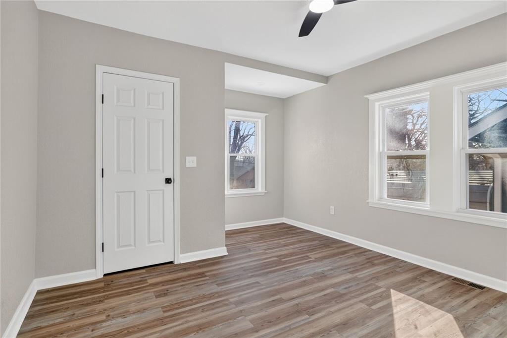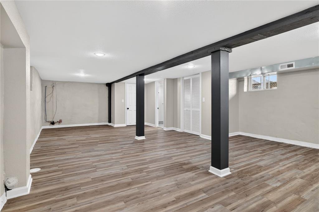 Completely rebuilt from the inside out, this fully renovated home delivers modern finishes and brand-new major systems for true peace of mind. This is not a cosmetic update — the HVAC, roof, windows, electrical, and plumbing are all brand new. The big-ticket items have been done. The main level features new luxury flooring, fresh neutral paint, and a bright open layout. The kitchen is fully updated with white shaker cabinets, sleek black hardware, stainless steel appliances, subway tile backsplash, and modern lighting. One bedroom includes its own private half bath — a rare and convenient feature. The beautifully finished basement adds valuable living space with a closet plus a full bathroom, making it perfect for an en suite bedroo, second living area, guest suite, office, or flex space. Outside, enjoy a fully fenced yard, off-street parking, and private rear access. With brand-new systems, designer finishes, and a finished lower level, this home offers style, function, and long-term value — all in one package.