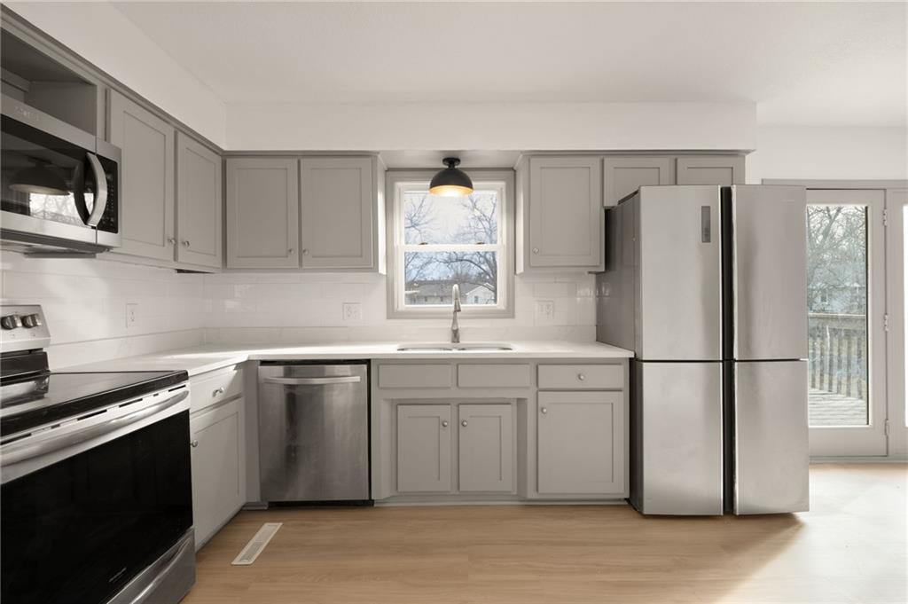 This impeccably remodeled 3-bedroom, 2.5-bath residence has been thoughtfully transformed inside and out, offering a seamless blend of modern sophistication and timeless design. Seller is offering a 1 year home warranty. The exterior showcases striking new siding, a brand-new roof, an elegant cedar post detail, and a new concrete driveway and porch steps being completed this week — creating a polished first impression from the moment you arrive. Inside, every detail has been carefully curated. Enjoy new carpet and luxury vinyl plank flooring, fresh designer paint, updated lighting, and beautifully refinished cabinetry featuring new doors with hidden hinges. The kitchen and both full baths are elevated with stunning quartz countertops and custom tile showers, delivering spa-inspired comfort and style. Situated on a generous corner lot with convenient access to Maple Grove Elementary, Maguire Street, DD Highway, and Whiteman AFB, this home offers both prestige and practicality. This is more than a remodel — it’s a complete transformation. Schedule your private showing today. Some photos have been virtually staged