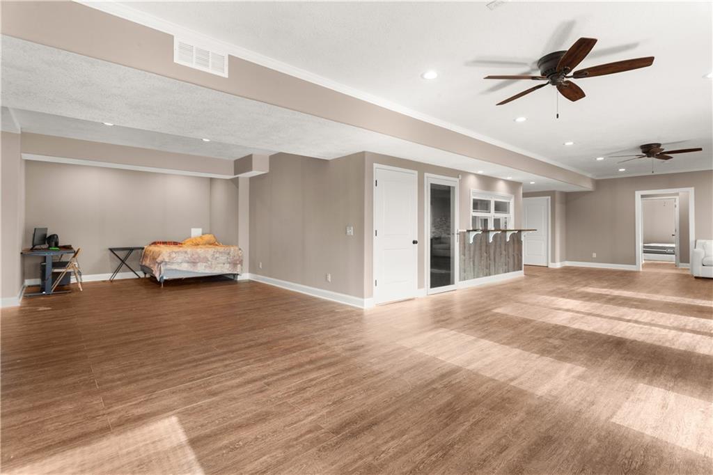 Stunning True Ranch in Desirable Golf Course Community! This spacious 5-bedroom, 3-bath true ranch offers a gorgeous open floor plan designed for comfortable living and entertaining. Beautiful hardwood floors flow throughout the main level, highlighting the light-filled living spaces. The chef’s kitchen opens seamlessly to the great room and dining area, with direct access to a covered deck overlooking a beautiful backyard that backs to peaceful common area — perfect for relaxing or hosting guests. The main-level primary suite features a huge spa-like bathroom with an oversized walk-in shower and generous closet space. A nice-size laundry room adds everyday convenience. The finished walkout basement is ideal for multi-generational living or entertaining, complete with a second full kitchen, additional bedrooms, full bath, a large suspended garage storage area or you could finish to have additional recreation space. Golf Course is an added bonus. You will love it!