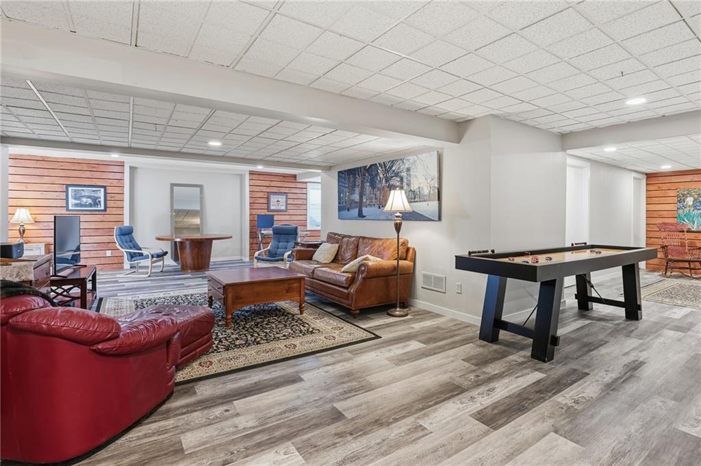 Located in the highly sought-after Foxborough maintenance-provided community, this move-in-ready 3-bedroom reverse 1.5-story villa sits on a spacious corner lot with a side-entry garage. The main level features a welcoming family room with fireplace and built-ins, a formal dining area, and a beautifully updated kitchen (2023) with new cabinetry, countertops, expanded island, and a premium ZLINE 6-burner dual-fuel range. The primary suite and second bedroom are both on the main level with hardwood floors installed in 2022. The finished lower level was renovated in 2024 and includes a large family room, game area, full bath, and the third bedroom located in the basement—perfect for guests or a private office. Enjoy maintenance-free living with HOA-covered lawn care, snow removal, trash, recycling, street maintenance, and neighborhood pool access. Fantastic location close to schools, parks, shopping, dining, and highway access.