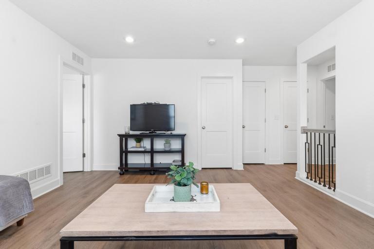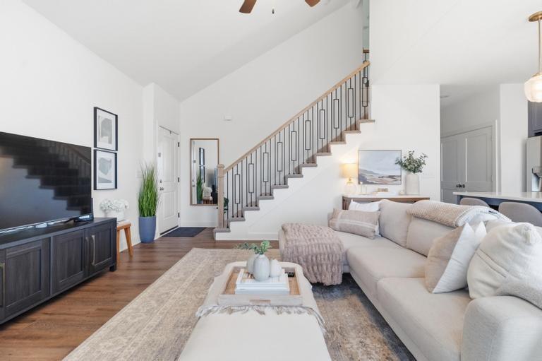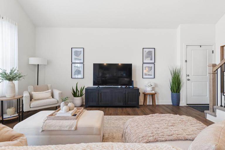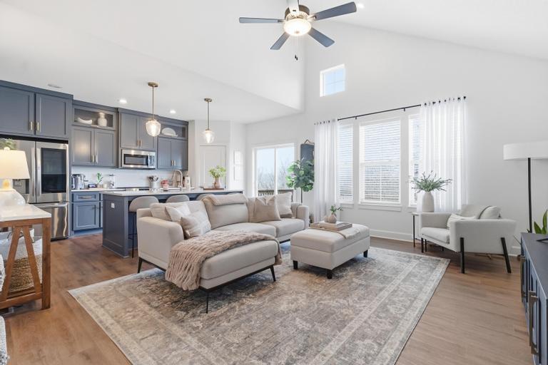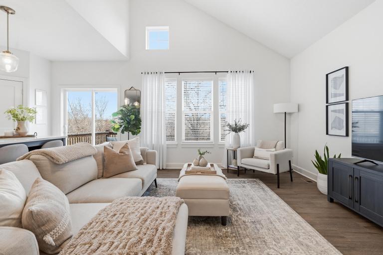 Meticulously maintained and move-in ready, this stunning 1.5-story townhome offers the perfect blend of style, space, and functionality. Featuring 3 bedrooms and 2.5 baths, this thoughtfully designed home includes a luxurious main-level primary suite complete with a huge walk-in closet and private bath showcasing a spacious walk-in shower. The open-concept main level is filled with natural light from soaring ceilings and a dramatic wall of windows. The beautifully appointed kitchen is the heart of the home, offering a massive island, custom cabinetry, stainless steel appliances, and a generous walk-in pantry — ideal for both everyday living and entertaining. Convenient main-level laundry and a powder room add to the home's practical layout. Upstairs, you’ll find a large bonus loft area creating flexible living space perfect for guests, a home office, or media area. A second primary suite upstairs features exceptional closet space and beautiful finishes throughout. The walk-out basement is ready to be finished to suit your needs and backs to peaceful green space for added privacy. Enjoy low-maintenance living with an HOA of just $100/month covering mowing and snow removal. This exceptional home combines comfort, elegance, and convenience — don’t miss your opportunity to make it yours!