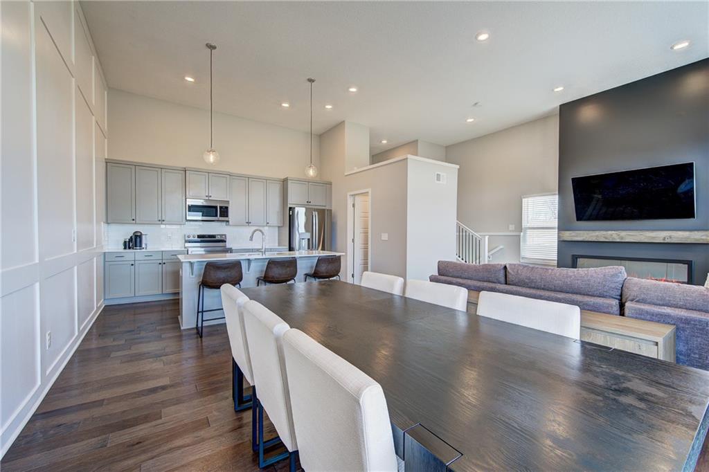 Well-maintained, like new 3 bedroom, 3 full bath end-unit with a 2-car garage in the sought after Osage community. Desirable end location offers added privacy with no neighbors behind or to the side. Welcoming, spacious entry leads to an open-concept living, dining, & kitchen area with soaring ceilings & excellent natural light. Living room highlights a striking fireplace, while the kitchen & dining space feature a craftsman-style accent wall. Kitchen offers a large island, ample cabinetry, walk-in pantry, & stainless steel appliances. Upstairs with primary suite featuring walk-in closet & double vanity. Additional bedroom with full bath access, & convenient laundry. Daylight lower level includes a rec room, third bedroom, & full bath, plus generous storage in the utility closet and under the stairs. Deck with privacy wall overlooks peaceful farmland & provides plenty of common ground. Excellent location close to highways, shopping, parks, & dining. Located within the highly desirable Lee’s Summit School District.