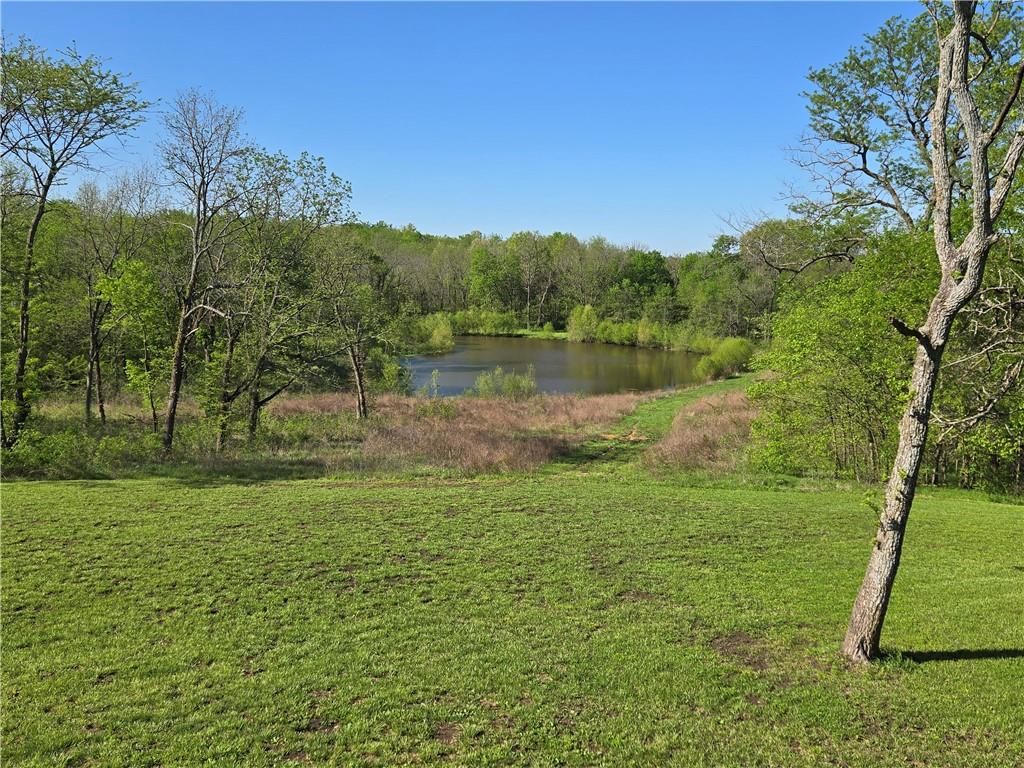 Imagine that perfect country home. Do you see yourself sitting high above your own pond, watching ducks lazily circle before landing? Picture gazing at the tree line as deer emerge in the early evening, or neighbors passing by in a horse and buggy rather than a pickup truck. Have you dreamt of a manicured yard, a new fruit orchard, or a 2,800 sq. ft. outbuilding with utilities? Is your ideal home perched on a high spot with views for miles in every direction? If so, this is your dream come true! This beautiful 15.7-acre property only minutes from Whiteman AFB features rolling terrain, a stunning stocked pond, and a stream winding through the land. Enjoy open spaces, breathtaking views, lots of wildlife and timber with trails to explore. The low-maintenance, metal-sided 1,686 sq. ft. ranch home offers three bedrooms, two and a half baths, and a finished walk-out basement. Recently remodeled and repainted, the kitchen boasts butcher block counters, an island, upgraded fixtures, and a deep country sink. The open floor plan in the main living area creates a welcoming space, while the finished basement includes a second kitchen—ideal for a mother-in-law suite. Step out onto concrete patios or a deck off the main living area, overlooking the pond—providing everything you need for the contented country life you’ve always imagined. There is plenty of room in the 3024 sf outbuilding with electricty and a water hydrant for both work and toys. A newly planted Orchard pollinated by your own bee hives completes the picture. Here, you can watch both sunrise and sunset from the same spot. If you value seclusion, privacy, beauty, and serenity, this property checks every box. Don’t miss the chance to make it yours! NEW PRICE, PLUS $10K SELLER CREDIT TO USE FOR LOWER PRICE, REMODELING, OR RATE BUY DOWN!!!