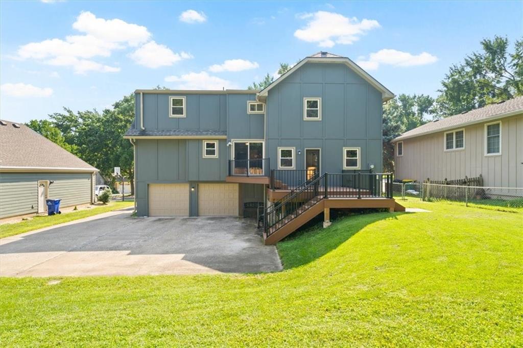 Space, flexibility, and one of the best price-per-square-foot opportunities in the area. This 5-bedroom Lenexa home offers room to grow in a location close to parks, dining, and City Center, giving you the square footage many buyers are searching for but rarely find in this price range. Two main-level living areas, one with a fireplace, create space for both everyday life and larger gatherings. The kitchen opens to a composite deck added in 2022 overlooking a deep backyard that is ready for cookouts, yard games, or simply enjoying the extra outdoor space that smaller homes cannot offer. One main-floor bedroom works well as a home office or guest room, while the remaining bedrooms, including the primary suite with private bath, are upstairs. A second full bath serves the additional bedrooms, and a half bath sits just off the main-floor laundry. The lower level expands your footprint even further, with space for a rec room, TV lounge, gym, or future entertaining area, plus the start of a wet bar already in place. And the not so fun updates are already handled, including James Hardie siding in 2021, Champion windows, Lennox HVAC, garage doors, chimney lining and crown, roof, insulation, and gutters. That means you get the space you need without worrying about the big-ticket items. If you have been touring smaller homes in the same price range and wishing for more bedrooms, more living space, or a bigger yard, this home delivers the space to live comfortably now and grow into over time.
