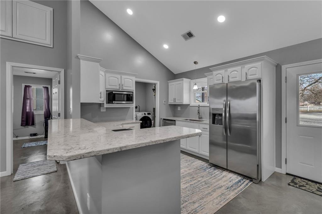 Welcome to 330 High Street, a recently built, 3 Bedroom, 2 bath ranch home that is move in ready for you and your family. This home has been quality built with some great features such as foam insulated walls, floors and ceilings, quartz countertops in kitchen, onyx countertops in bathrooms, custom cabinets, vaulted ceilings with storage, cat 5 wired for internet, wired for cable, LED can dimmable and adjustable lighting, heated concrete floors with adjustable zoned heat, and is all electric. The front and back porch are covered with plenty of room for a grill and sitting area. This charmer has maintenance free siding and stone wainscoting plus is highly energy efficient. Located near local schools, the new pool, park, and golf course, this home has stunning views and a prime location. Whether you're starting a family or looking for your forever home, this energy-efficient gem is ready for you!
