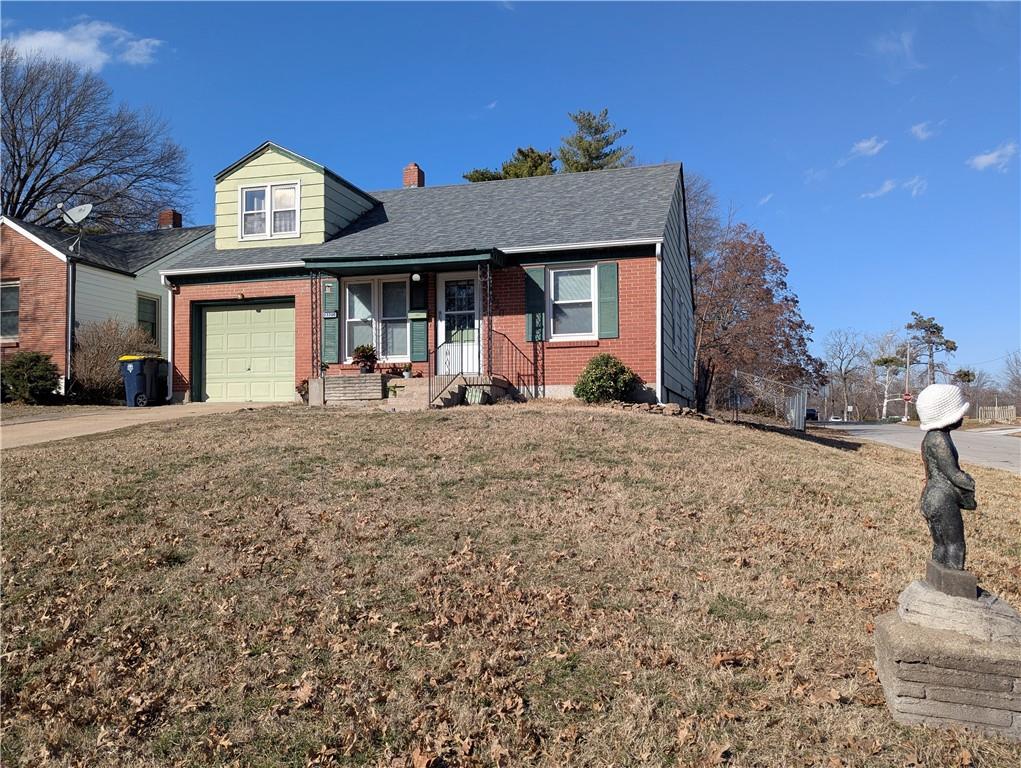 **Back on Market No Fault of the Seller, Previous Buyers never dropped off earnest money deposit or did inspections so the seller cancelled.** Classic Brick Charm Meets Modern Style Near Brookside & Waldo! Modern comfort meets timeless character in this stunning 3-bedroom, 2-bathroom Minimal Traditional brick home. Perfectly positioned to offer the ultimate Kansas City lifestyle, this residence boasts undeniable curb appeal with its striking red brick exterior, signature gable dormer, and an inviting covered front porch featuring vintage decorative metal supports. Gourmet Kitchen: The heart of the home is a chef’s delight, featuring sleek dark cabinetry, premium stone countertops, a stylish tiled backsplash, and high-end stainless steel appliances including a gas range. The upper level provides a cozy retreat with a private bedroom featuring unique architectural angles and ample natural light. The expansive, clean basement offers incredible versatility—perfect for a home gym, workshop, or additional family living. This corner lot, Waldo adjacent property is ready for the warm hearted buyer ready to make this house, their home.