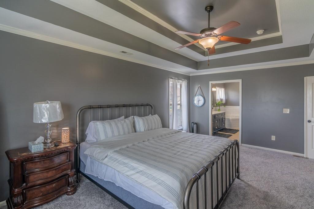 Welcome to a beautiful two-story residence in the coveted Northridge community of Piper, where elegance meets everyday comfort! Offering 4 bedrooms and 4.5 baths, this meticulously designed home delivers in every way. Large Chef’s kitchen appointed with custom cabinetry, gleaming granite countertops, and an expansive walk-in pantry, seamlessly blending beauty and function. Entertain effortlessly in the formal dining room, or gather in the grand living room anchored by a striking fireplace and filled with natural light. Step outside to your private outdoor retreat, a spacious deck overlooking a pristine & fenced yard, creating the perfect backdrop for sunset evenings and unforgettable gatherings. Upstairs, the primary suite is a sanctuary of its own, featuring soaring vaulted ceilings and a spa-inspired bath complete with dual vanities, a whirlpool soaking tub, an elegant walk-in shower, and two oversized walk-in closets. Brand new plush carpet enhances the entire second level. Each secondary bedroom offers generous walk-in closets, including a private ensuite and a well-appointed Jack-and-Jill bath. The finished walk-out lower level elevates entertaining with a sprawling recreation space, an additional fireplace, and a stylish bar designed for hosting in style. Located in one of Piper’s most desirable neighborhoods, Northridge offers scenic walking trails, an impressive resort-style community pool, and vibrant neighborhood events that create a true sense of community. Tour it today, you can't miss this one.
