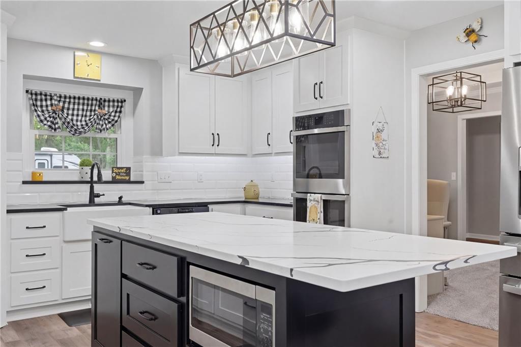 This beautiful home features so many updates! The inviting living room draws you in with views of the land as you cozy up by the fire. The completely remodeled kitchen calls you to recreate family recipes and make memories with your loved ones. The spacious vaulted eat in area gives the illusion of a country farmhouse while you enjoy your morning cup of coffee. There is an additional room that is waiting for your creativity. Is it a formal dining room? An office? Or a playroom for the kiddos? The laundry room/ half bath is right off the garage entrance allowing you to come in and clean up after working in the yard. The 3 oversized bedrooms on the main level provide a true ranch experience. The master bedroom has it own access to the deck, a walk in closet and private on suite. The on suite has a walk in shower, antique looking tub and double sinks. The basement has a non conforming bedroom with its own private bath and walk in closet. A perfect hangout space with a pool table and dart board that stays. All it needs it you! With all the storage this home offers you can stay as organized as you want. There is also a workshop space for the creative person in the family. The 2 car garage has a surprise loft area that you could finish or use for additional storage. With so many options this home is just waiting for you to make it your own!