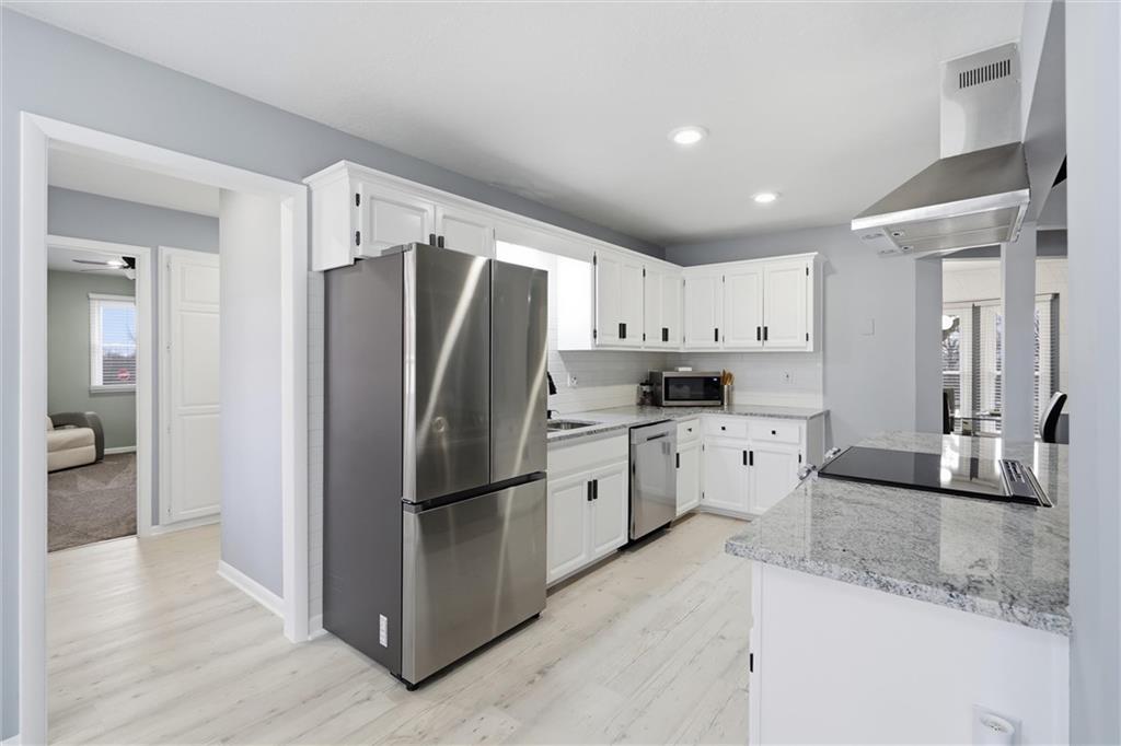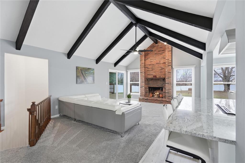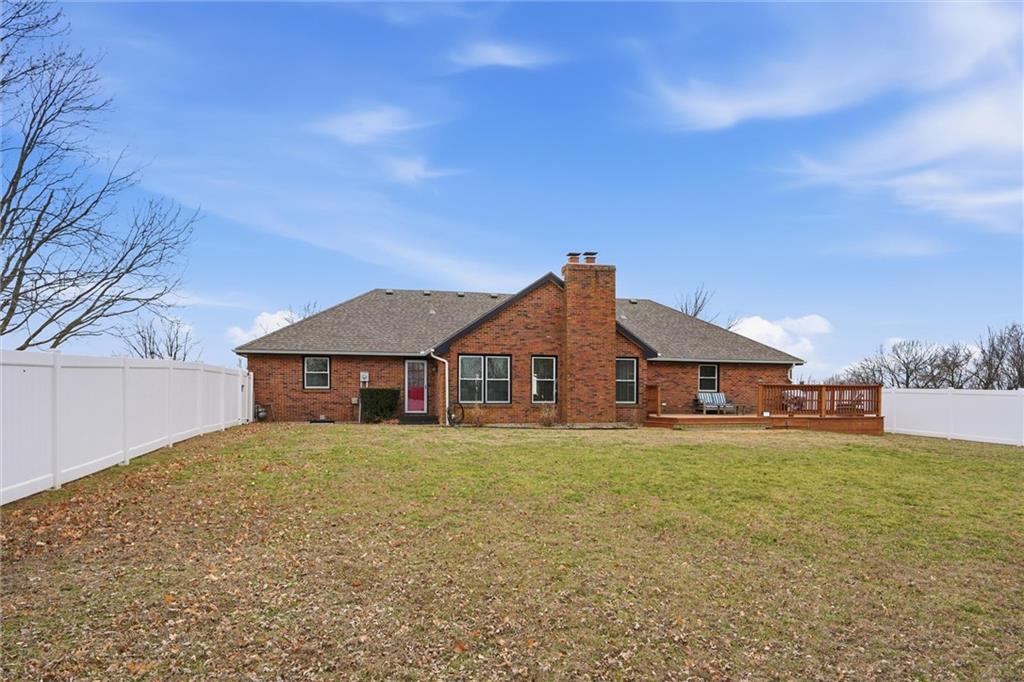 Discover your dream home on a 2-acre corner lot with gorgeous views and abundant wildlife. This meticulously remodeled 4-bedroom, 3-bath ranch home features a spacious 3-car garage and a host of modern upgrades. Enjoy effortless main-level living with an open-concept layout, formal dining, family room, home office, and a chef’s kitchen with granite counters, new appliances, and a large island. The primary suite includes double vanities and three closets. Cozy up by one of two brick fireplaces. The walkout basement offers a second family room with a fireplace, a non-conforming room, a full bath, a workshop area, and abundant storage. Recent updates include a 16x24 deck, fresh paint inside and out, updated furnace, A/C, water heater, humidifier, roof, guttering, and thermal windows. Enjoy the new (approximately $17,000) top-of-the-line fenced yard (lifetime warranty), perfect for pets, kids, or a future pool. All appliances stay, plus new attic insulation and a just-serviced septic system. Ideally located 3 miles from the Historic Shopping District and Elms Hotel, near golf, wineries, a community center, and in an AAA school district. KCI airport is just 45 minutes away. Don’t miss this move-in-ready opportunity; this one has it all!