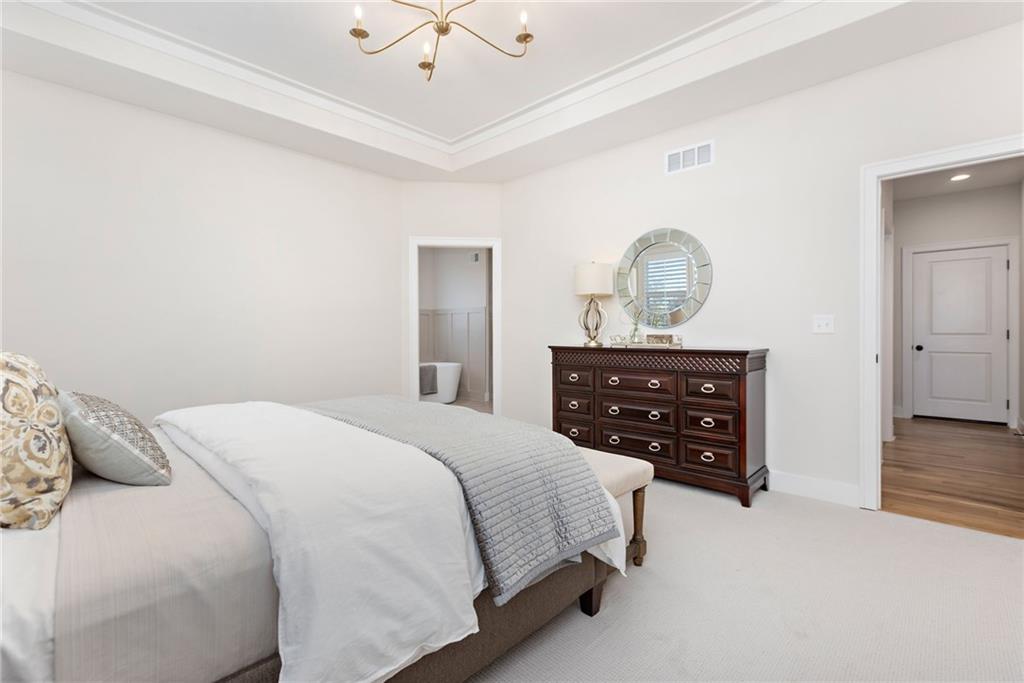 4 Car Garage, backs to Greenspace! Open floor plan built to maximize space. Custom kitchen cabinets, gas cook top, quartz tops, large walk-in pantry and plenty of kitchen storage. Convenient laundry off master, walk in shower (two head) plus tub. His and her closets unlike any reverse plan at this price. No more fighting over closet space. Unique, dry bar off family room, custom beams in family room with stone fireplace. Lower level is a full daylight for natural light. Large rec area has wet bar. Hallway to two more private bedrooms. Wonderful, covered deck, Sprinkler system. Photos are representation of home under construction. Actual home has 4 car front entry. All room sizes are estimate and subject to verification.