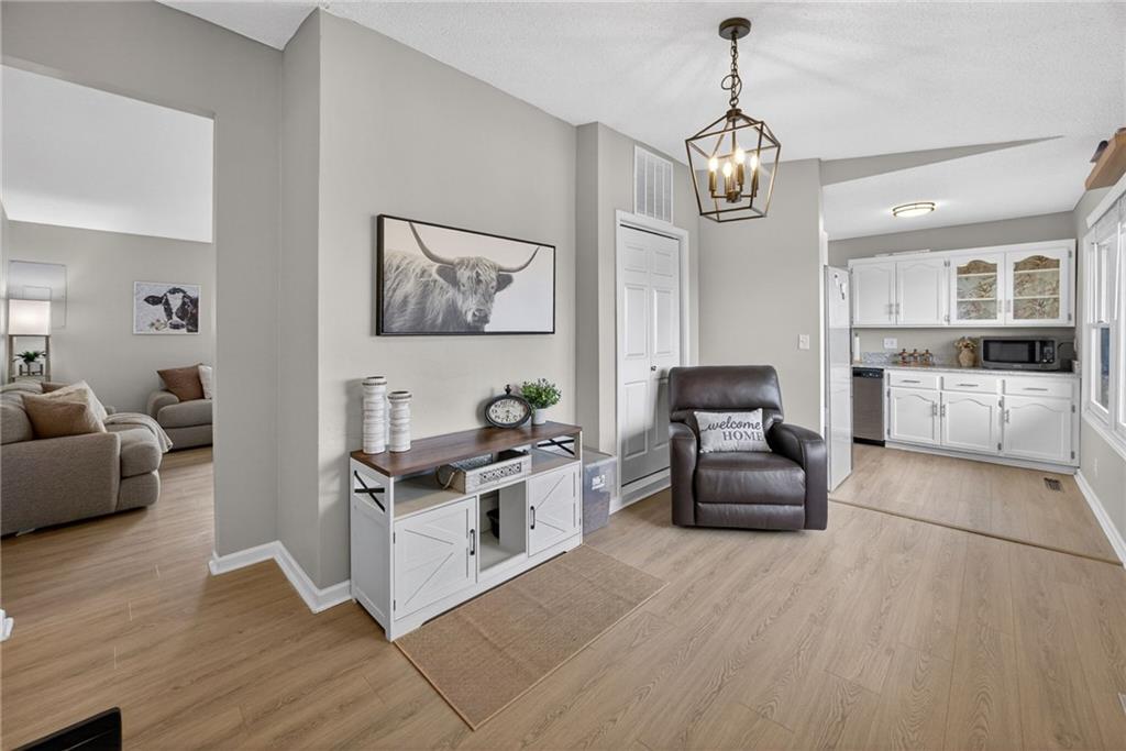 Welcome home to this adorable, move-in-ready ranch in Paola, perfectly situated on a beautiful .45-acre lot along charming Sunset Lane, where you’ll enjoy completely unobstructed sunset views putting on a gorgeous show every evening. This well-maintained 2-bedroom, 1-bath home offers easy main-level living with everything conveniently located on one floor. Inside, you’ll love the fresh updates including all NEW LVP flooring throughout and brand-NEW interior paint, creating a clean, modern feel from the moment you step in. The living room is brought together by a beautifully updated fireplace featuring freshly painted shiplap, a NEW electric fireplace insert, and a brand-NEW concrete hearth, a warm and stylish focal point for the space. Major improvements give peace of mind with a NEW HVAC system, NEW sewer line, NEW washer and dryer, updated appliances including a NEW refrigerator, and a NEWER roof (2022). SO MUCH NEW! Outside, the attached covered carport and double-wide driveway provide plenty of parking and everyday convenience. Cute, buttoned-up, and truly turnkey, this home offers the perfect blend of comfort, updates, and space to enjoy both indoors and out.