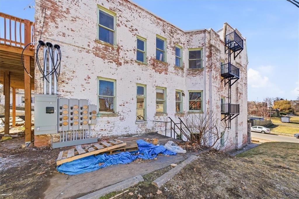 INVESTORS! 12-unit, Value-add, Small apartment on historic Museum Hill in St. Joseph MO! PRICE IMPROVEMENT! Gorgeous, brick 4-story multifamily property, known as Boteler Flats, featuring 10 one-bedroom units and 2 studios, & 2 car detached garage w. private drive on large corner lot (space for additional parking to be added in future if needed). Major systems have already been completed - roof, plumbing, electrical, heating and A/C, new 14 gang meter can installed and approved w/ city & major iron work fire escapes completed by local artist to negate need for fire suppression system. Partial interior rehab completed! Floors 1–3 are framed and ready for drywall completion. 4th floor has been framed and drywalled. Buyer to complete interiors: kitchens, baths, flooring, and remaining drywall on floors 1–3. Some minor exterior work still needed as well. Strong upside potential for investors looking to finish out and stabilize a 12-unit asset. Selling As-is. Seller’s disclosure available. Seller willing to have trash removed from site prior to closing. Buyer to verify all information and perform due diligence. Seller will review all offers with proof of funds. Seller has multiple other properties for sale as well, willing to 1031 and consider ALL offers! Showings by appointment only w/ Agent!