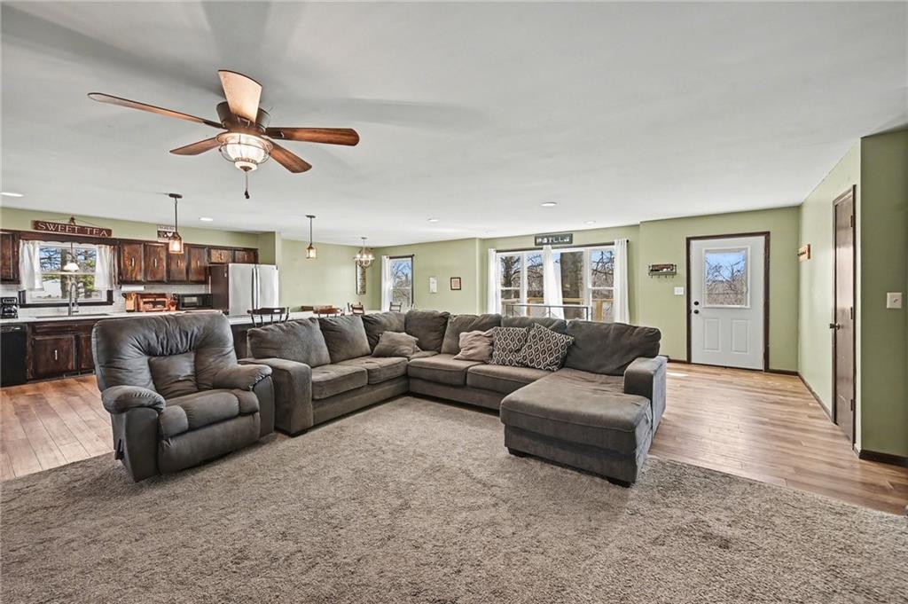 Step inside to an inviting open layout designed for both everyday living and entertaining. Natural light pours through all-new windows, highlighting the spacious living areas and seamless flow throughout the main level. The finished basement provides incredible flexibility — perfect for a second living space, game room, home office, or guest retreat. Outside, enjoy your morning coffee or evening sunsets from the screened-in porch overlooking your private acreage. Need space for hobbies or storage? The large outbuilding is ideal for a workshop, equipment storage, or keeping the boat and toys protected year-round. With brand-new metal siding and windows, the big-ticket exterior updates are already done — offering durability, efficiency, and peace of mind. If you’ve been looking for acreage, updates, and usable outbuildings all in one package — this is it.
