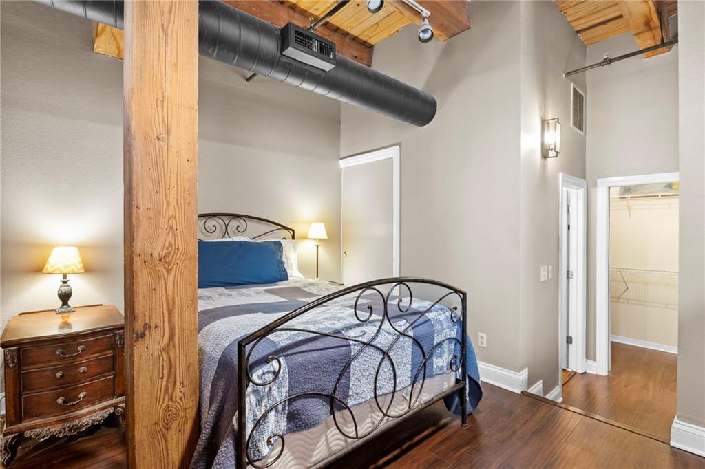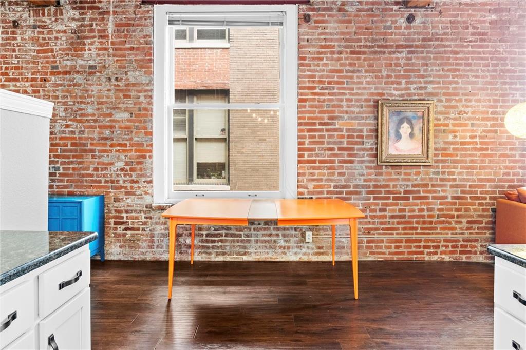 The true essence of loft living! A Garment District stunner at Soho Lofts! Industrial, Sleek and Historic Charm! Unique One Bedroom corner unit with 2 walls of original exposed brick, Soaring Wood/Cast Iron Beams and Ceilings, East and South -Wall of windows providing tons of natural light for any plan lovers out there AND CITY SKYLINE VIEWS!!! High-end LVP Wood Plank flooring, Updated light fixtures/fans, Fully updated kitchen featuring granite countertops, Custom soft-closse Cabinets & drawers, Subway Tile Backsplash, undermount lights, wonderful counter space and cabinet storage, Stainless Steel Electric Stove, Mircrowave, and full-size refrigerator! Spacious lofted 1 Bedroom w/ pocket door closet. Second Walk-in Closet with tons of hanging room and option for 3rd row! Hall Linen AND coat closet! Updated Bathroom with custom vanity, granite counter, ceramic sink, updated faucet, and tub/shower. Unlike most units in this building, ductwork throughout the whole unit for proper temperature control. Unit comes with an additional secured storage unit! Get anywhere in the city in a flash! Walk/ride to nearby restaurants, River Market, P&L, Sporting KC, and 2 blocks from the KC Streetcar! So much to enjoy in this darling hidden gem! Building amenities include Roof Top Deck, Party Room, Gym, and two Laundry facilities! One of which is conveniently located on the 4th floor! Renovated Party Room and Gym, COMING SOON! Secured parking can be leased through Denison Parking! Conveniently connected to the building! THIS COULD BE YOURS! LIGHT, BRIGHT, STELLAR LOCATION, FANTASTIC VIEWS! Loft Living is the BEST living!!! LOVE WHERE YOU LIVE! In Soho Lofts, relish history and embrace the best Lifestyle Kansas City has to offer!