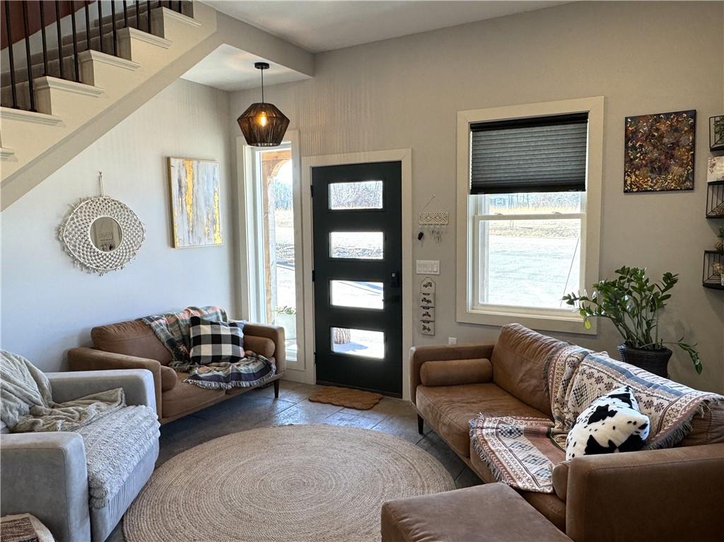 This is truly a custom home, located within the gated community of Linn Valley Lakes. Nothing about this home is builder grade including design, quality, features, or style. Enter the home and you are treated to a beautiful gas fireplace with a stone face, concrete floors, and designer fixtures. 10 ft ceilings provide the open look and feel throughout the entire main level. The chef's kitchen includes high-end stainless-steel appliances, a gas stove, custom cabinets with brass handles and stunning green quartzite countertops. The quartzite is heat resistant has the look of marble, yet it is easier to maintain. Four can sit at the island, but there is room for a small table if you wish. The backsplash is black subway tile laid in a herringbone pattern on one side and a beautiful gold and black hexagon pattern on the other. As you leave the kitchen and head to the back door, there is a large pantry, a laundry room, and a mudroom. Get ready to feel pampered in the primary suite. The large bedroom has a feature wall and lots of natural light. The primary bath includes a quartzite vanity with double sinks and beautiful brass lighting. The shower is a work of art with 4 different tiles that blend to create something beautiful. A bidet? You bet! The main bath and the second bedroom are also on the main floor. Going up the stairs, you have gray carpeting and white wood trim with black iron balusters. The 3rd bedroom is a loft, and it has a walk-in closet. The fully fenced backyard has a resort feel with over 200 sq feet of covered porch and then decking extending out to the large swim spa. The jets can create a water flow for swimming, and it feels more like a pool than a spa. The detached garage has a bonus room upstairs that is heated and cooled by a mini split and makes a great office, craft room or simply a get-away space for kids (or adults). It would be impossible to re-create this home for the list price, so make plans to see this special home soon!