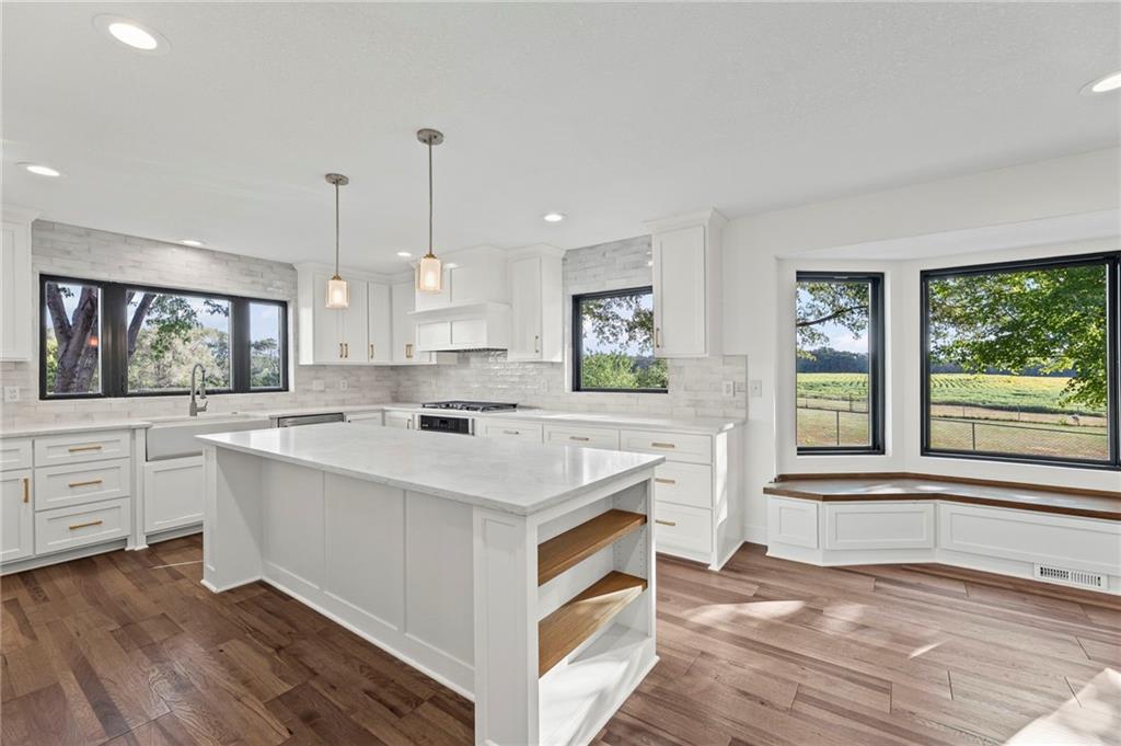 Beautiful fully remodeled home on hard surface road just north of Gardner Lake! This low maintenance Stucco and Brick, 4 bedroom, 5 bath home on 10 acres offers over 5000 sq. ft. of solid construction with a newly finished basement area offers an abundance of space both inside and out. Completely remodeled kitchen with a gas range, new cabinets, countertops, hidden pantry, appliances, coffee/wet bar, The vaulted great room boasts a stunning floor-to-ceiling woodburning stone fireplace. (Fireplace is 9'x16') New wood floors throughout the main level, large entry way, formal dining room, large office/nursery/playroom/media room. Luxurious remodeled primary suite with a spa-like shower & tub, walk-in closet, and convenient laundry room access to shower. The full basement features a large family room area with second wood-burning brick fireplace, a full bath, a safe room and a storage room. The upstairs area has two oversized bedrooms 2 bathrooms plus a nonconforming bedroom/office/playroom connecting to a generous storage room. Listing agent is related to Seller.