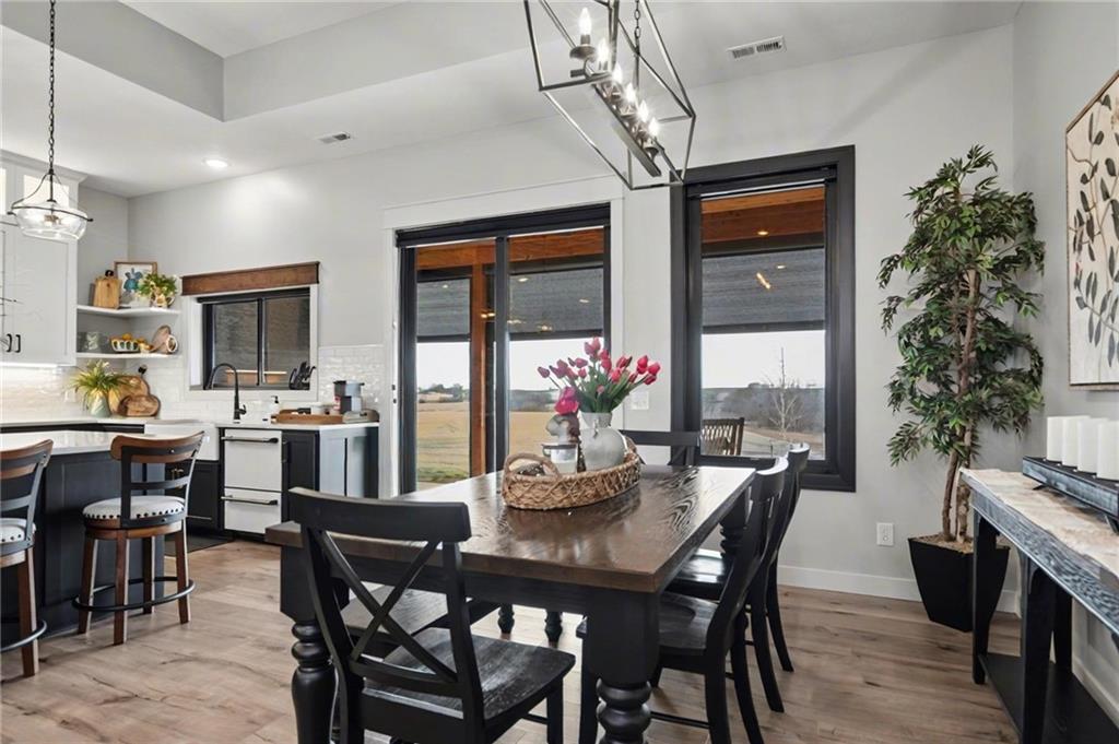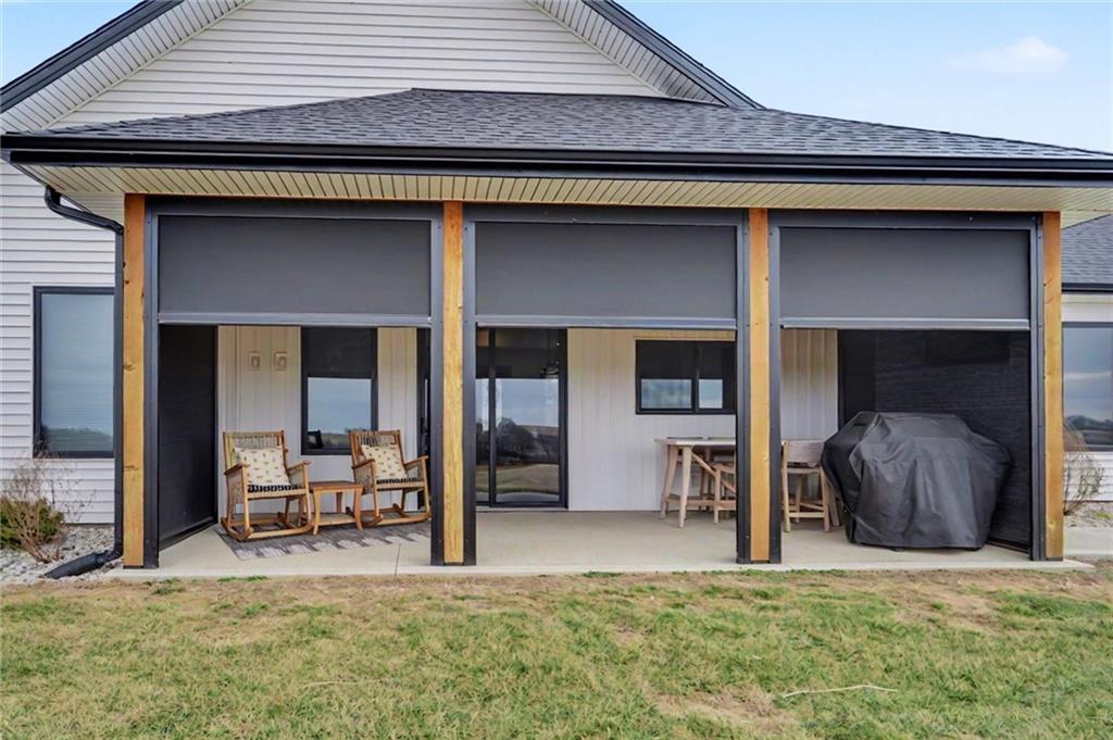 You walk in and feel like you are entering a personal retreat. You'll love the open floor plan, large windows, high ceilings, and beautiful views throughout. Kitchen features high end appliances, custom cabinets and a large island with ample storage making it a perfect place to gather with family and friends. This home was built with a purpose, it has no stairs, wide doorways, an oversized three car garage with ample parking, garage storage and a safe room for emergencies. Beautifully landscaped. This home was built with a Doniphan County Restoration grant and has 10 more years of tax rebates saving you tens of thousands of dollars. Covered porch on the back of the house has heavy custom screens mounted on the perimeter of the porch that work off of a remote. House backs to the future Doniphan Hills Golf Course. As the golf course gets completed, the demand is sure to go up. Come take a look.