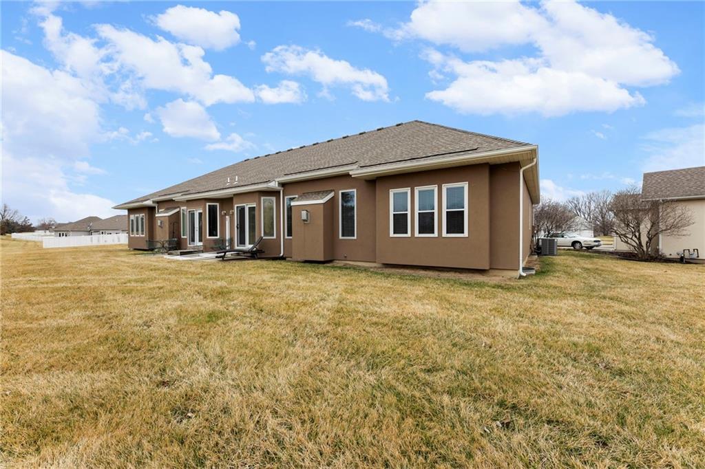 Welcome home to this well-maintained ranch in the desirable Villas of Northbrook subdivision! This 2-bedroom, 2-bathroom home offers almost 1550 square feet of MAIN level living space, including a spacious 1,492 sq ft of unfinished lower level space -- perfect for a REC room, home office, additional living area or bedroom and bathroom. The open layout features a comfortable main floor with soaring ceilings, engineered hardwood floors, main floor laundry and lots of natural light. Spacious kitchen with granite countertops, painted cabinets, stainless steel appliances and eat in kitchen make this home perfect for entertaining. Primary bedroom leads into the spacious primary bathroom with a double sink, oversized walk-in closet and shower with tile surround. Step outside to your private patio, ideal for relaxing or entertaining guests. The attached 2-car garage provides convenience and ample storage. Located in the Liberty School District with a new water heater in 2024 and a new furnace and A/C in 2019! Don't miss this opportunity to enjoy single-story living with room to grow in one of Kansas City's established communities with lawn and snow removal included in the HOA fee. Fridge, Washer and Dryer all STAY!