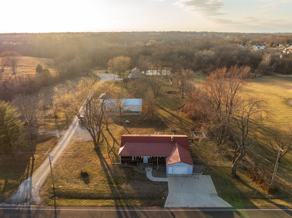 This charming, fully remodeled 2 bedroom, 2.5 bathroom home sits on a 1.17 acre lot just outside Belton, Missouri, offering a peaceful rural feel while remaining conveniently close to town amenities, schools, and highways. The house has been completely updated from top to bottom, with everything new. Modern kitchen, granite countertops, fresh cabinetry, updated bathrooms with fixtures, tile work, and vanities. New carpet and flooring throughout. Fresh interior and exterior paint, energy-efficient windows, new HVAC system, updated electrical and plumbing, and a newer metal roof for worry-free living. The main level includes a welcoming living and dining area that flows into the kitchen, a convenient half bath for guests, and one bedroom with a full bath. The other bedroom is located just outside the other full bath in the hallway. The home feels bright and airy with plenty of natural light. Outside, the generous 1.17 acres provide ample room for outdoor activities, gardening, or future expansion, all with a nice mix of open yard and mature trees for privacy. The standout features are the two detached shops/workshops. A large 30'x55' shop perfect for serious hobbyists, mechanics, woodworking, vehicle storage, or small business use, with concrete floors, electricity, lighting, and insulation. A smaller 16'x24' shop is great as additional storage, a she-shed/man cave, or specialized workspace. This property blends modern comfort in a like-new home with outbuildings on a sizable lot, ideal for those wanting space, functionality, and a quiet setting just minutes from Belton. It's turn-key ready for immediate enjoyment! So don't miss out on this rare opportunity and schedule your showing today!
