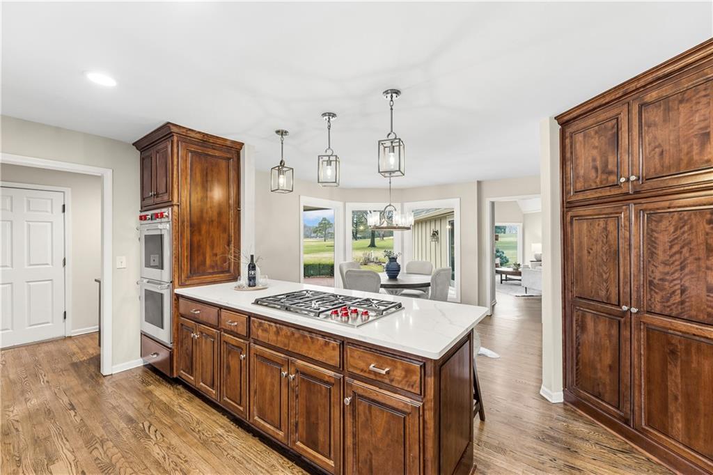 Welcome to 12854 Pembroke Circle in much sought after Leawood South with Golf Course Views For Days - where comfort meets style in this incredible and unique 4 bedroom, 4.5 bathroom home with amazing golf course views from every bedroom and main living area in this house. This home offers a perfect blend of luxury and laid-back living. Step inside and you will find a newly remodeled kitchen that's a dream come true for any cook, featuring top-of-the-line stainless steel appliances of the highest caliber. Walk by the beautiful butler's pantry on your way to the golf course views featuring a cozy nook with a built-in ice maker and microwave. The primary bedroom is a cozy renovated retreat complete with an updated bath and a walk-out to your own newly renovated private deck - ideal for sipping your morning coffee or unwinding in the evening. The outdoor space is a true highlight on almost half an acre lot, with a gorgeous patio area perfect for BBQs and outdoor entertaining, with an outdoor kitchen. Fire up the grill in the dedicated outdoor cooking area and enjoy dinner with a view. There's plenty of room for everyone with a finished lower level that includes extra living space, a wet bar, an additional bedroom with a full bath for convenience, and walk-out/walk-up access. This home is all about easy living with a touch of elegance. 12854 Pembroke Circle isn't just a house, it's a place where you can truly feel at home with views that can't be beat! Come and see what makes this home SO SPECIAL!