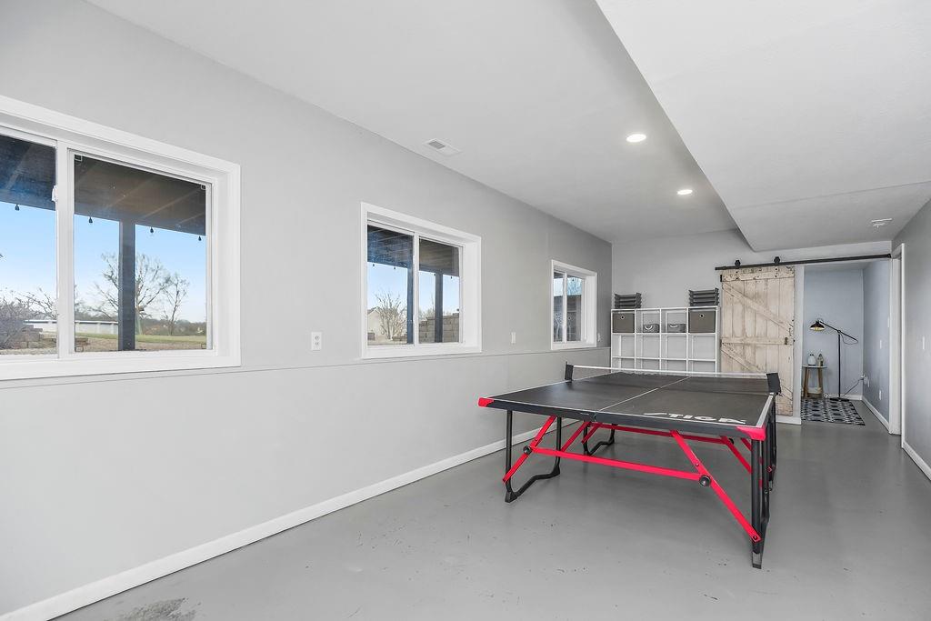 Beautifully updated home offering the perfect blend of modern upgrades, outdoor living, and functional space inside and out! The exterior has been thoughtfully transformed with a newly manicured gravel driveway, extensive rock landscaping, fresh paint on doors, shutters, and garage door, plus sanded and stained wood beams on the front porch. Enjoy outdoor living with a new firepit area, upgraded Deckorators composite decking and railing, and a spacious 15x42 (630 sq ft) deck—perfect for entertaining. A saltwater pool with custom drainage system and a 2,000 sq ft garden add to the outdoor appeal. Located within walking distance to a nature trail near Clinton Lake, this property offers both privacy and outdoor adventure. Inside, the home features a fully repainted interior, new LVP flooring on the main level, and brand-new carpet upstairs. The kitchen is a showstopper with a huge 40 sq ft island, added cabinetry, butcher block countertops, new sink, and updated lighting throughout. Additional updates include re-screened windows, new stair treads and railing, and updated lighting with dimmer switches. The finished basement offers additional living space with an updated full bath and remodeled stairs and railing. Barnboard accents in the dining room and half bath add warmth and character. The barn offers incredible versatility with a new concrete floor, added second level, electric on both floors, painted rafters, and framed workspace. Concrete has also been poured under the overhang for a future three-season room near the pool.