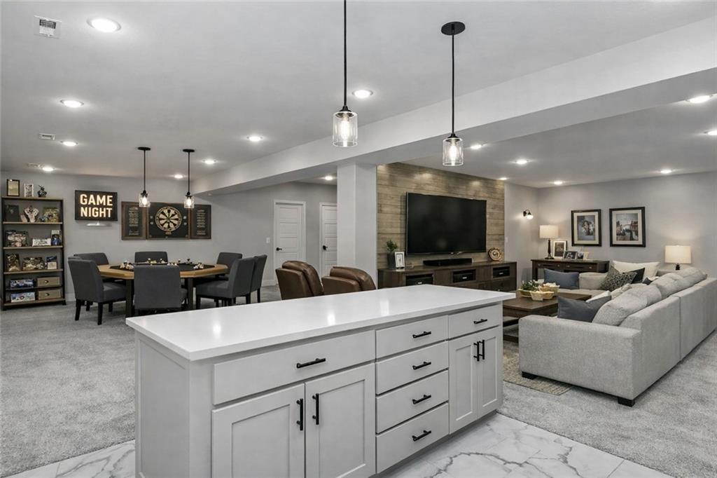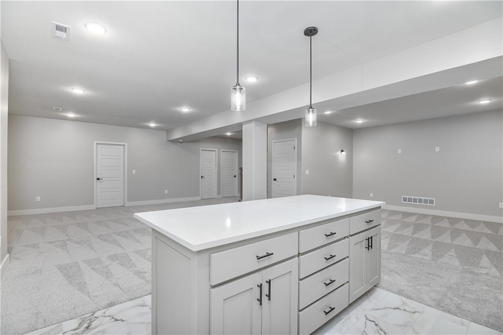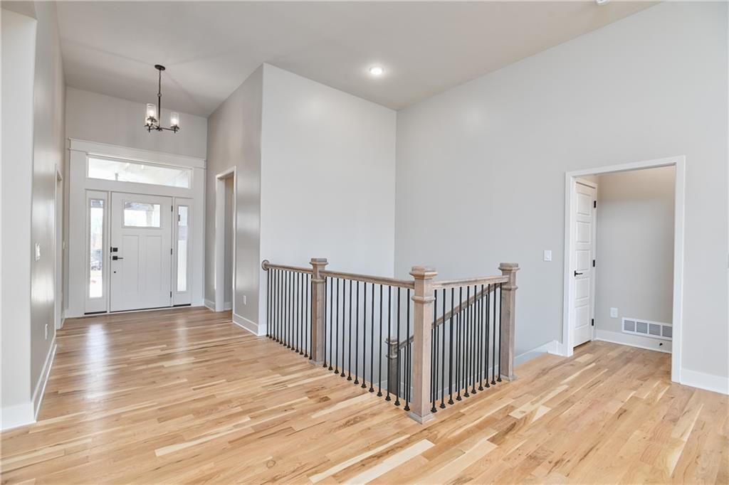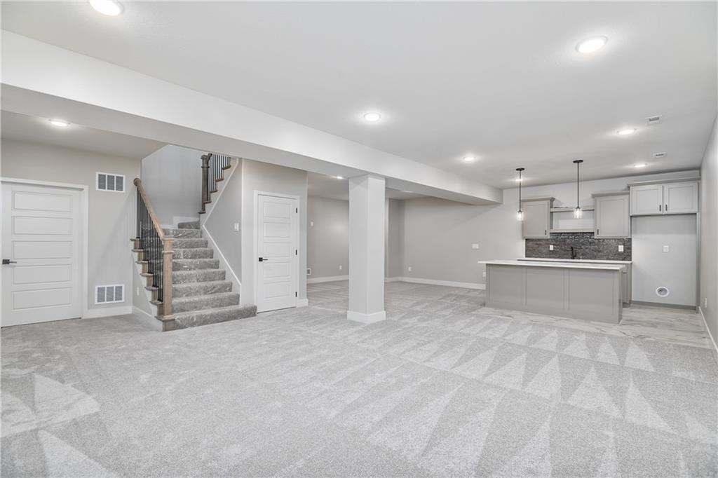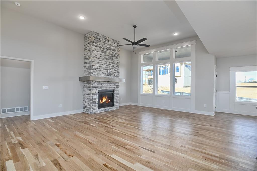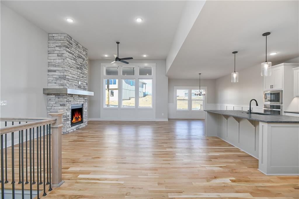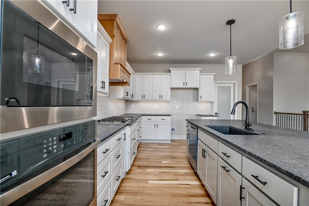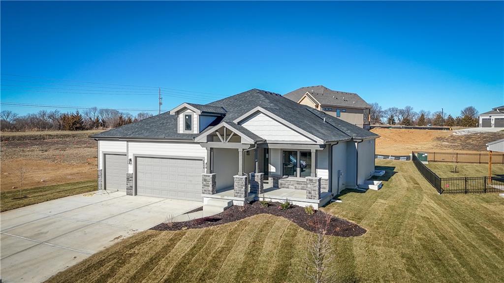 NEW PRICE – Move-In Ready in Canyon Lakes! Don’t miss this incredible opportunity to own the highly sought-after Rose reverse 1.5-story plan by Stone Creek Custom Homes in the thriving Canyon Lakes community. Designed for both comfort and style, this spacious home offers an open-concept layout ideal for everyday living and effortless entertaining. The heart of the home features a show-stopping kitchen with a massive granite island, custom cabinetry with soft-close drawers, floating shelves, and an oversized walk-in pantry that provides exceptional storage. The stunning stone fireplace creates a dramatic focal point in the great room, while rich hardwood floors flow throughout the foyer, kitchen, and main living areas. The main-level primary suite is a true retreat, highlighted by a luxurious, oversized walk-in shower complete with dual shower heads and a built-in bench.The finished lower level expands your living space with two additional bedrooms, a full bathroom, and a wet bar—perfect for hosting guests, movie nights, or game days. Situated on a full lot, the home boasts a HUGE patio designed for outdoor entertaining and relaxing evenings. This home has a fantastic front porch with plenty of rooms for sitting and enjoying the spring weather!