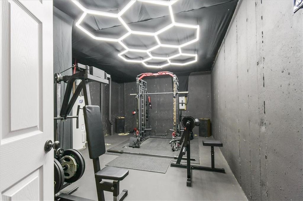 Welcome to your ultimate dream home, where modern farmhouse elegance meets high-tech luxury! This stunning, nearly-new two-story residence in the highly sought-after Woodbury community is packed with the "must-have" features that today’s buyers crave. From the moment you step inside, the open-concept main floor captivates with its designer shiplap accent walls and a gourmet kitchen that serves as the heart of the home. You’ll fall in love with the custom staggered cabinetry, sleek granite countertops, and a functional center island perfect for meal prep or casual dining. The layout is thoughtfully designed for convenience, featuring a bedroom-level laundry room and four spacious upstairs bedrooms, including a primary suite with a large walk-in closet that feels like a private sanctuary. The finished basement is a true showstopper, offering a lifestyle experience you won't find anywhere else. It features a professional-grade home gym illuminated by incredible hexagonal LED "honeycomb" lighting, a dedicated creative studio or gaming office, and a spacious media room complete with a built-in Murphy bed for effortless guest hosting. Step outside to your private outdoor oasis, where a large covered patio provides the perfect setting for relaxation. Whether you are soaking in the hot tub, watching the big game on the outdoor TV, or enjoying the peaceful view of your expansive backyard, this home is built for year-round entertaining. Complete with a spacious 3-car garage and located within the top-rated Grain Valley School District, this property offers the perfect blend of style, tech, and comfort. This is more than just a house; it’s the lifestyle upgrade you’ve been waiting for!