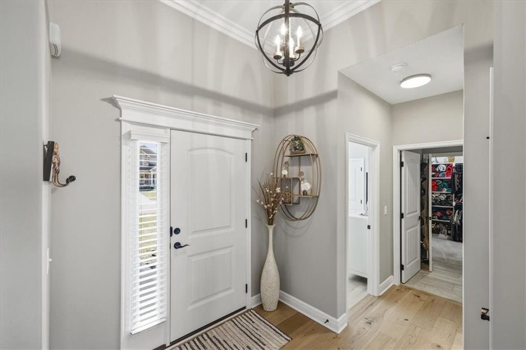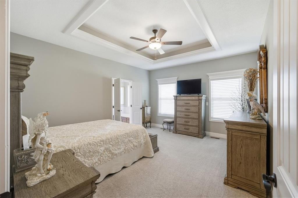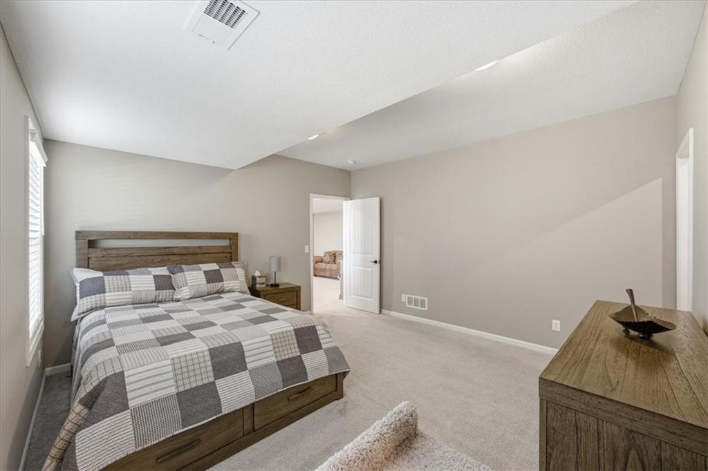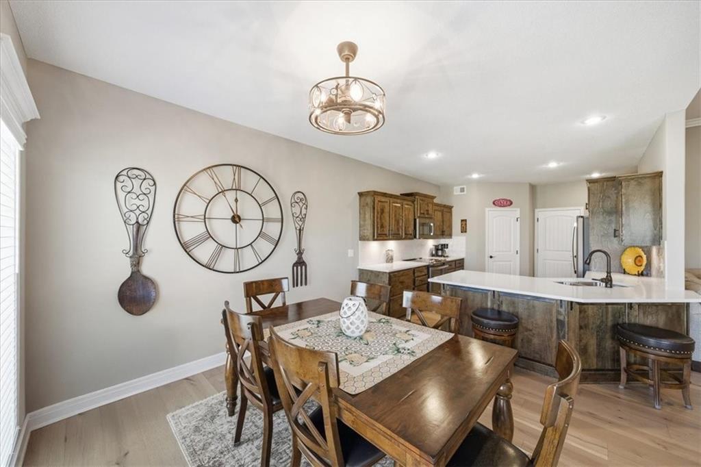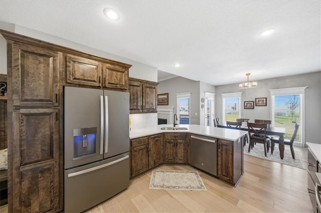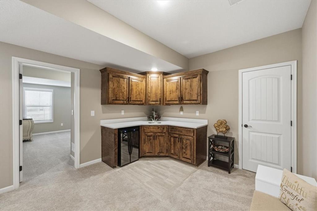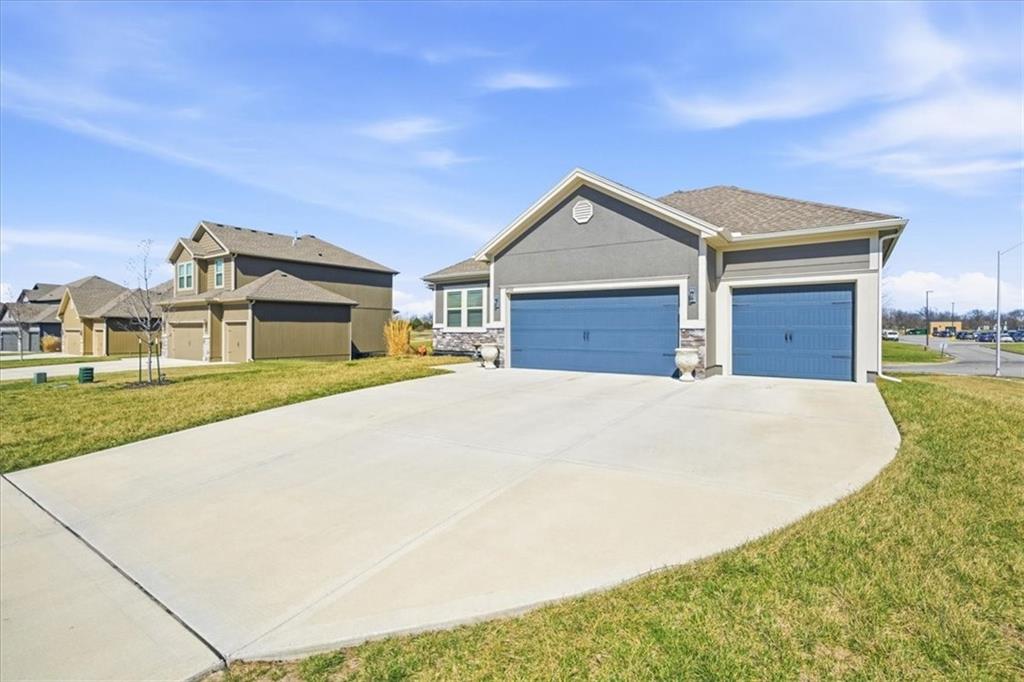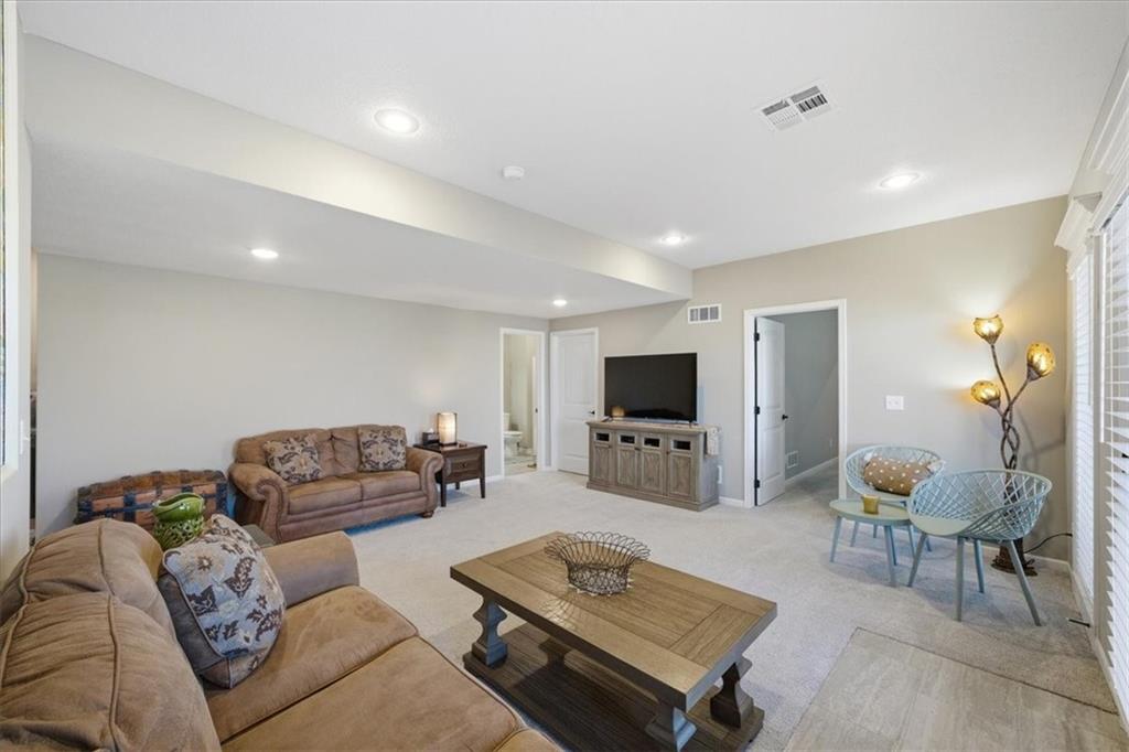 In the highly sought-after Waterford neighborhood, this rare reverse 1.5-story Wilshire II by Hoffmann Custom Homes offers 4 bedrooms, 3 full baths, and a 3-car garage. The open-concept main level features a bright, airy living space, a private primary suite, and a flexible second bedroom with a nearby full bath. The kitchen includes a spacious walk-in pantry, and just beyond, an extended deck steps down to a patio and fenced backyard—perfect for entertaining. The finished lower level features two more bedrooms, a full bath, a large rec room with an entertainment bar, and abundant storage, including a seasonal closet. An in-ground sprinkler system completes the home’s convenience and curb appeal.