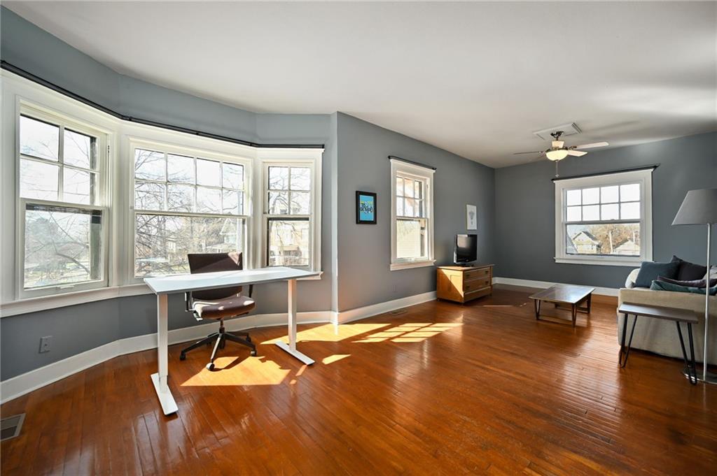 A rare opportunity in historic Hyde Park, this charming home offers 5 bedrooms and 3.5 bathrooms with timeless character and thoughtful updates throughout. Built with classic Missouri limestone shirtwaist construction, the home showcases beautifully preserved original woodwork and windows that highlight its historic craftsmanship. The main floor features two spacious living areas, including one with a cozy fireplace, along with a dining room that flows into a large kitchen complete with marble countertops and an island. A convenient main-floor primary suite with a recently renovated bathroom provides flexible living options. Upstairs, the second floor offers three generously sized bedrooms and a full bath, while the third floor boasts a massive private primary suite with a beautifully updated bathroom. Outside, enjoy the craftsman-style front porch perched high in the neighborhood—perfect for taking in stunning sunset views. A private driveway with a two-car garage adds rare convenience for the area. Ideally located just a short walk to Martini Corner, the Streetcar line, and all the vibrant amenities of Midtown living.
