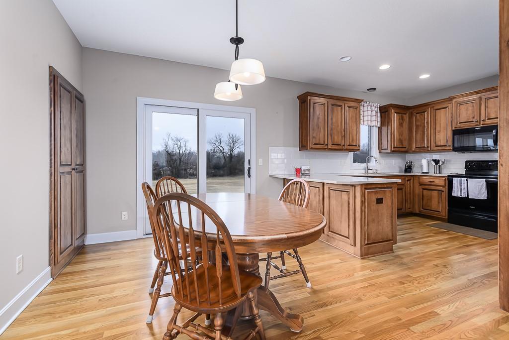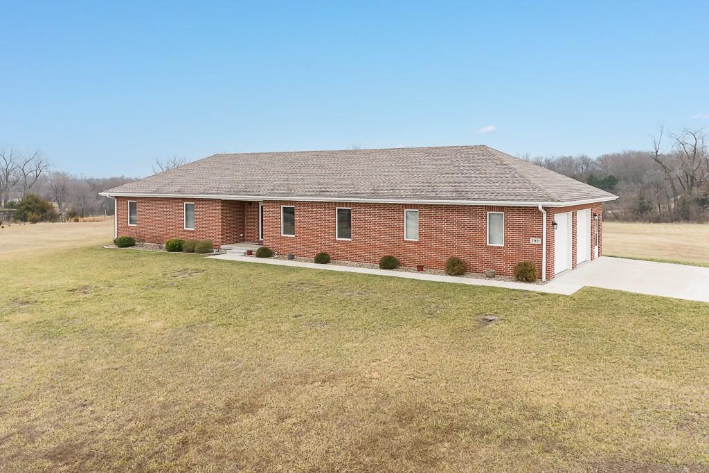 IMMACULATE 3-BED 2-BATH ALL BRICK RANCH ON 6 ACRES WITH UNFINISHED BASEMENT AND EXTRA GARAGE SPACE! This move-in ready country home features hardwood floors in the kitchen and dining room, a beautiful kitchen with quartz counters, and a large living room with upgraded carpet throughout the main living areas. The main-level laundry room adds everyday convenience. The primary bedroom suite offers his-and-her walk-in closets and a private bath with double vanities and a large walk-in shower. The full basement is unfinished but already stubbed for a full bath, giving you room to expand. Outside, you’ll appreciate the detached 20x25 garage for extra storage or workspace, all-brick construction, paved roads, and natural gas service. Both the peaceful 6-acre setting and the easy access to highways and the city make this property a great fit for buyers who want country living without giving up convenience.