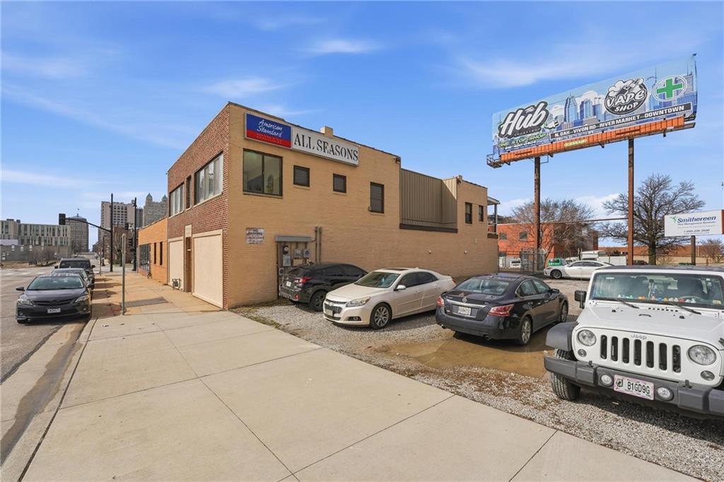 Exceptional live/work and investment opportunity in the heart of Kansas City’s East Village. This impressive 5,000 square foot mixed-use property at 808 E. 10th Street blends commercial functionality with elevated urban living. The first floor offers approximately 2,500 square feet of finished office or shop space, complete with an overhead door and flexible layout ideal for a small business, studio, or creative workspace. Upstairs, the second-floor residence delivers true luxury with 2 bedrooms and 3 baths, a custom kitchen, two sunrooms, and a private outdoor deck perfect for entertaining or relaxing. The spacious primary suite features a room-sized closet, complemented by California Closet systems throughout. The property includes a secure, gated lot with rear building access. Also included is the adjacent parcel at 816 E. 10th Street, providing 12 parking spaces (4 currently leased) plus additional income from a billboard that sits on the property. Opportunities abound: operate your business below and live above, convert the lower level into additional residential space for a 5,000-square-foot downtown retreat, or lease the commercial and residential spaces separately for income generation. Ideally located with immediate access to I-70, I-670, I-35, and US 71, and just steps from ongoing downtown development, this property offers a rare combination of location, versatility, and income potential. Selling 808-810 and 816 E. 10th Street together as a package. Per seller, zoning is C-2 (commercial) and R-4 (residential).