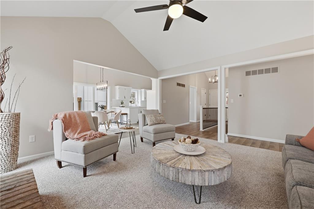 Move-in ready and beautifully refreshed, this charming home is tucked away on a quiet cul-de-sac lot in the highly rated Lee’s Summit School District with quick access to 50 Highway & I-470 for quick commuting around town and to Johnson County. Step inside to discover fresh paint throughout, brand new vinyl plank flooring and new carpeting on the main level, creating a clean and modern feel from the moment you enter. The light-filled living room features vaulted ceilings and a cozy brick fireplace, making it the perfect space to relax or entertain. Large and brand new energy-efficient thermal windows bring in abundant natural light while improving comfort and efficiency. You'll love the open & airy kitchen with an abundance of cabinetry, brand new Whirlpool stainless steel appliances and elevated quartz countertops. The primary suite and two additional bedrooms are conveniently located on the main level, while the lower level features a rec room, half bath & bonus room providing perfect set up for home office. The property exterior offers low-maintenance vinyl siding, a spacious fenced backyard ideal for pets, play, or outdoor gatherings, and an oversized two-car garage for storage & ample driveway for extra parking. With thoughtful updates already completed and a fantastic location near schools, shopping, dining, and major highways, this move-in ready home is ready for its next chapter. Come create your own story! Room dimensions depicted on photos are from photographers software. Buyers and their agents to independently verify data.