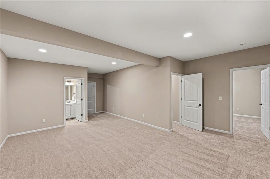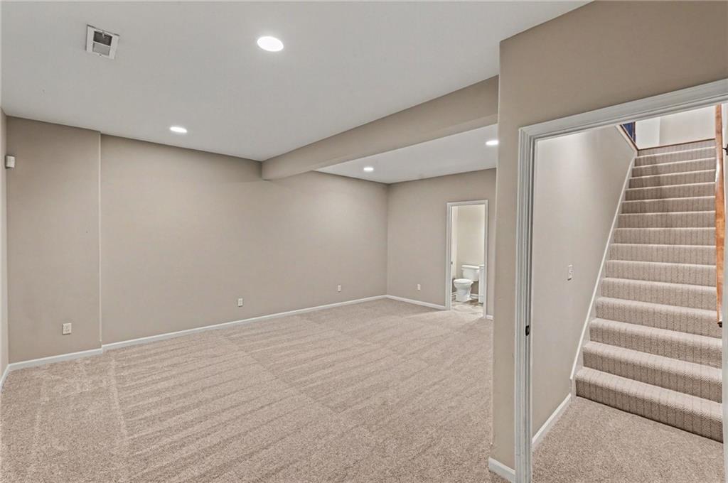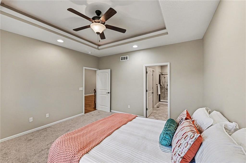 MOVE-IN READY & SHINES LIKE NEW! This stunning maintenance-provided ranch in the heart of Smithville has been meticulously prepared for its next owner with fresh paint and brand-new carpet throughout. The open-concept main level welcomes you with soaring vaulted ceilings, a cozy fireplace, and gorgeous hardwood floors that flow through the heart of the home. The kitchen features granite counters and a generous peninsula for casual dining. Retreat to the primary suite, boasting elegant tray ceilings with integrated backlighting for peaceful ambiance. The attached primary bath offers a double vanity, a beautifully tiled shower, and walk-in closet. For ultimate convenience, the laundry room is located on the main level. The finished lower level provides additional living space, ready for your personalized decorating touches. It features a true 3rd bedroom complete with an egress window and a walk-in closet—perfect for guests, a home office, or a teen suite. The back deck offers additional living space to entertain, or enjoy your morning coffee. You may even see the occasional cow in the neighboring pasture! Enjoy the peace of mind that comes with a move-in-ready home and the convenience of a low-maintenance lifestyle near shopping, downtown and Smithville Lake.