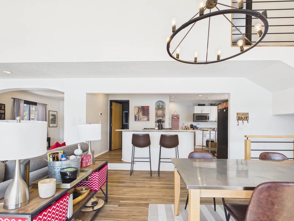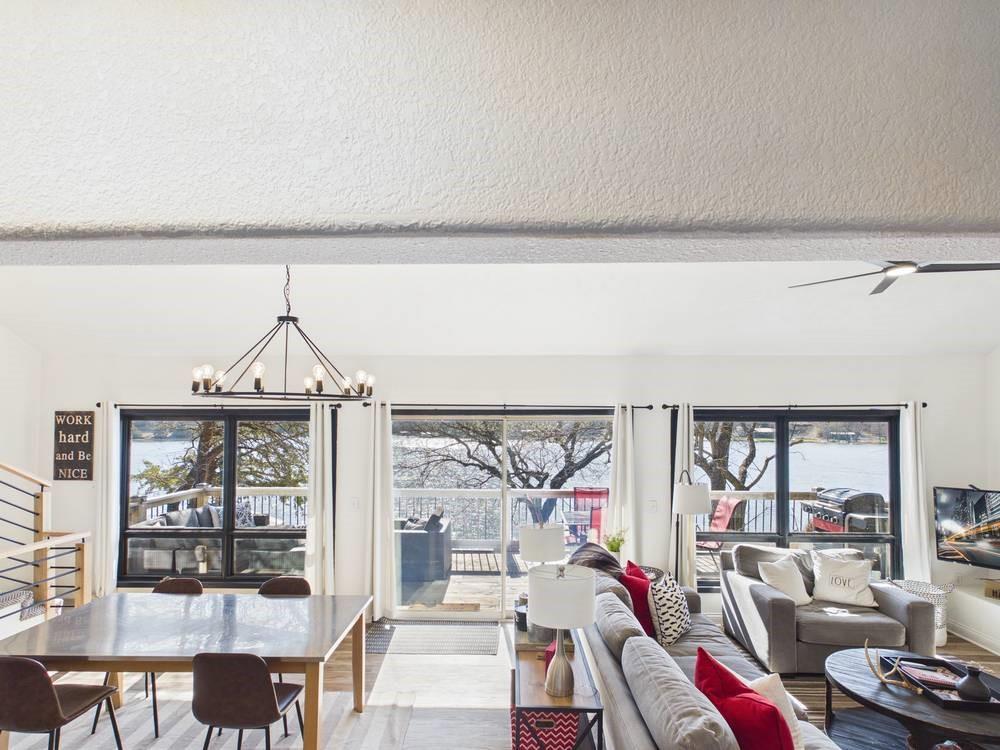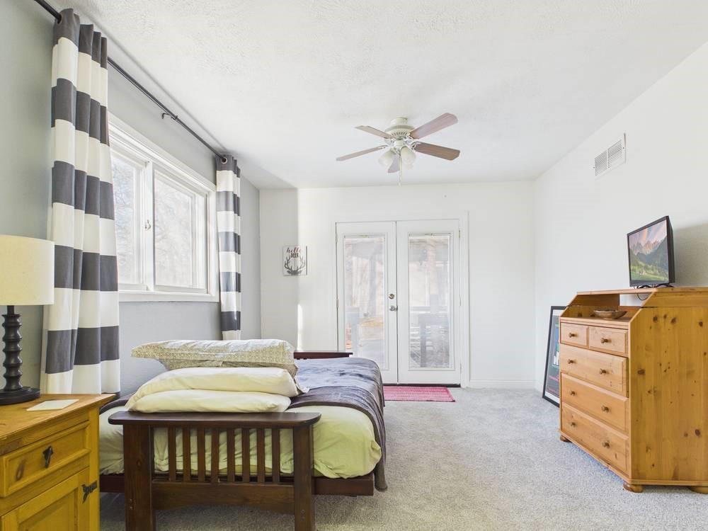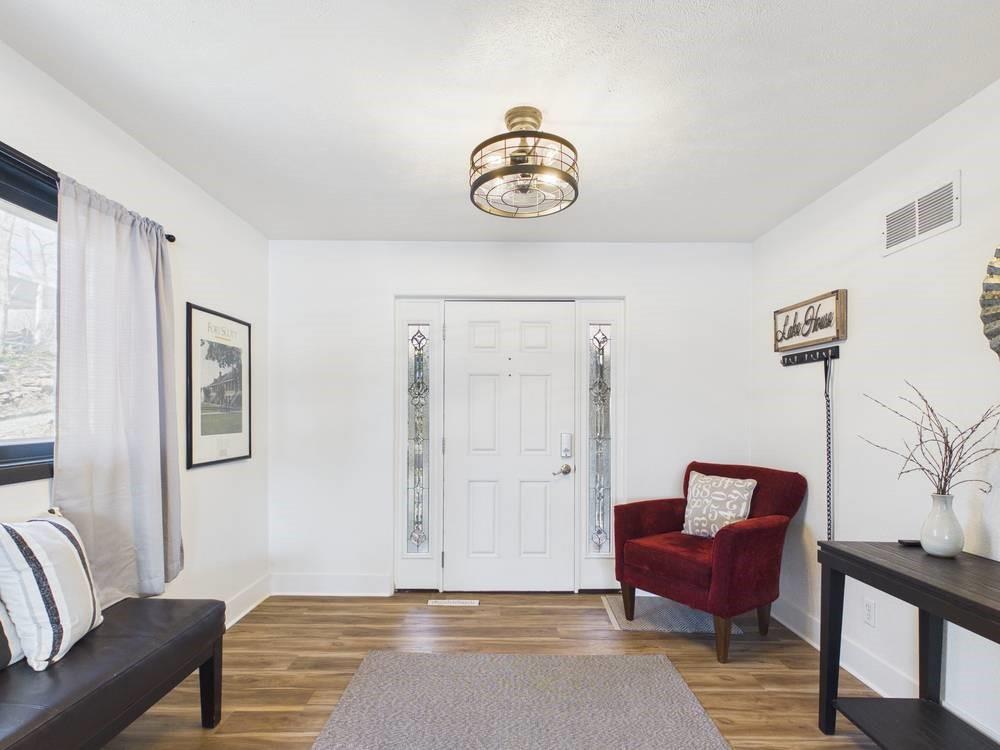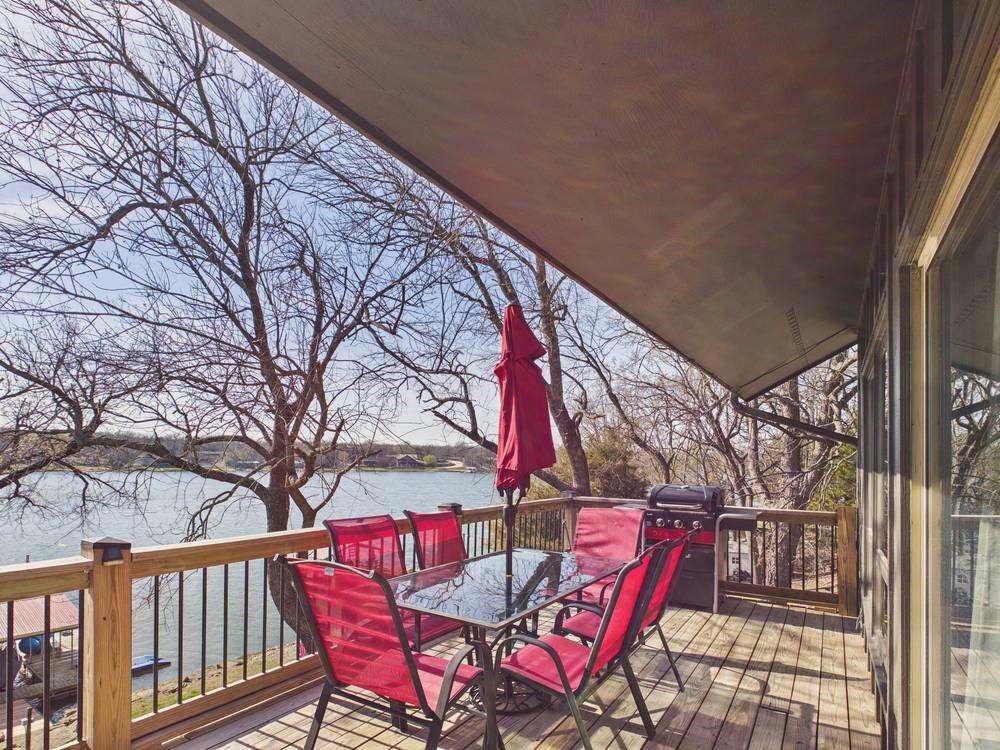 Situated on the tranquil shores of Lake Fort Scott, this fully furnished property features a charming main house and a separate recreation building, ideal for hosting guests and enjoying leisure time. The main house boasts three bedrooms and two-and-a-half bathrooms. Spanning three levels, the residence features a bright and airy open floor plan on the main level, highlighted by vaulted ceilings and modern stainless steel appliances in the kitchen. The expansive deck provides ample space for outdoor gatherings, while the lower-level covered patio serves as an additional entertainment area, ideal for relaxing by the lake. The separate recreation building enhances the property with an entertainment area, complete with a full bath, wet bar, sleeping area, and dining space, making it an excellent retreat for relaxation or entertaining. Additional perks include two storage sheds for convenience and a private boat dock complete with a lift, making it a perfect retreat just an hour and 15 minutes from the Kansas City area. Enjoy lakeside living at its finest! The exterior of the main house has just been completely repainted with wood repair and interior touch-ups. Lake Fort Scott has a $150 a year lake frontage fee and a monthly sewage bill paid to the city.