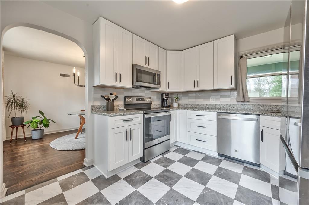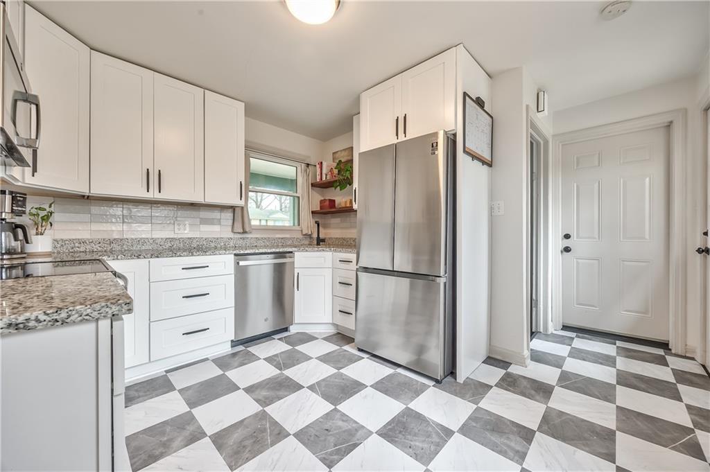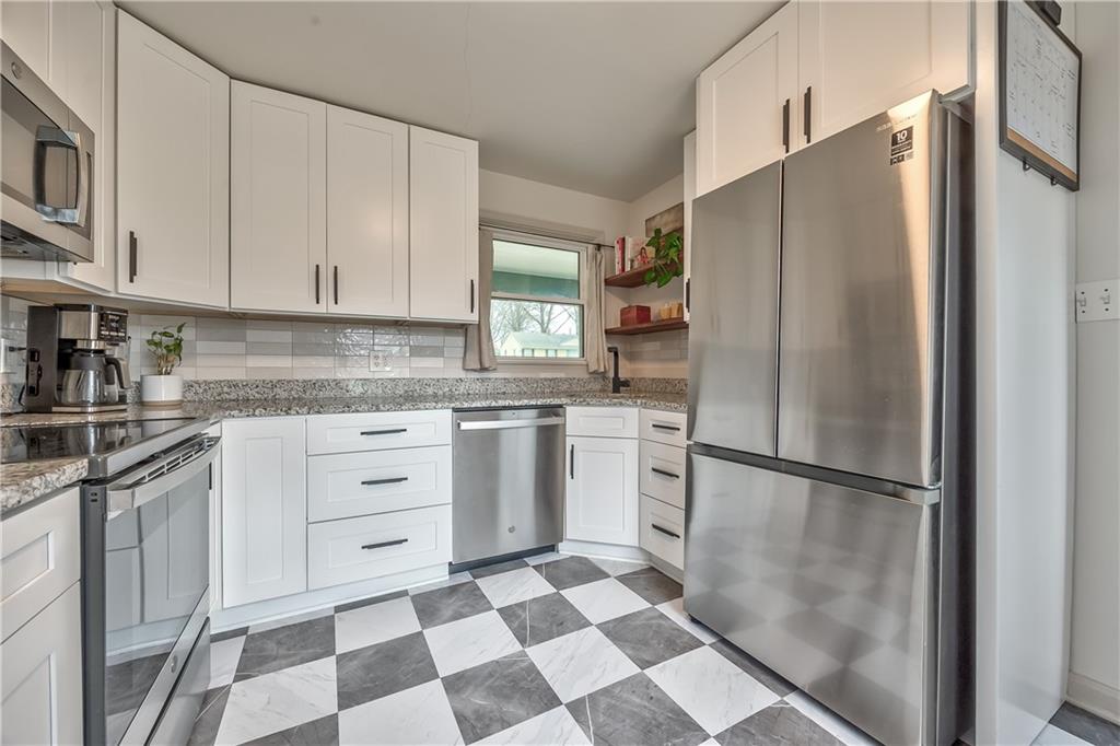 This meticulously renovated property presents a unique opportunity to experience urban living while benefiting from the space and privacy afforded by a generously sized lot exceeding 3/4 of an acre! The covered front porch is perfect for enjoying morning coffee. The interior boasts refinished hardwood floors and tasteful updates throughout. The fully renovated kitchen showcases updated soft close cabinetry, granite countertops, tiled flooring, and stainless-steel appliances. The bathroom has also been thoughtfully updated. Generously sized bedrooms, a formal dining room, and a welcoming living room with a beautiful fireplace provide comfortable and functional living spaces. The recently finished basement provides plenty of room for entertaining along with a half bath in addition to two storage rooms. Additional updates include some newer thermal windows. The home features an attached one car garage and an oversized driveway. The additional detached single car garage is complete with electricity as well as auxiliary heat and air conditioning, ideal for a workshop, or exercise space along with a storage area. Large lot with a fenced backyard (fence extends approximately halfway to the rear property line), offering additional open space with room to expand fencing, add a workshop/garage, or a garden! Enjoy evening gatherings with family and friends around the backyard fire pit.