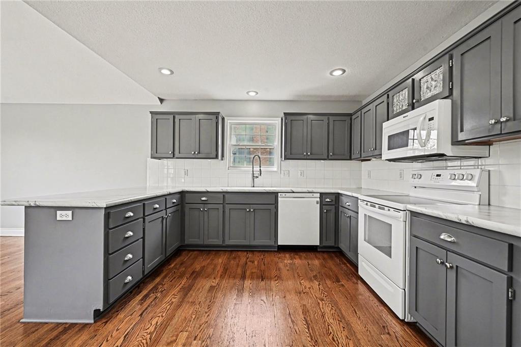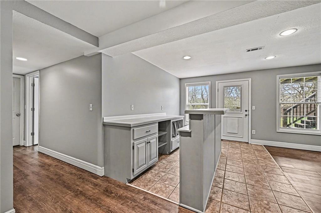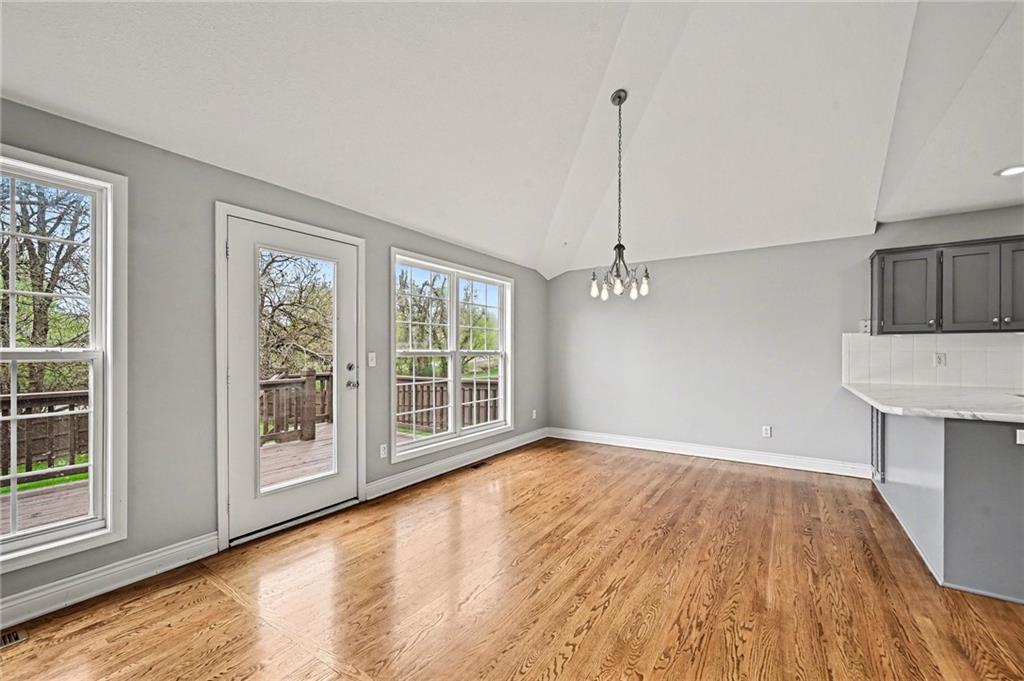 Built in 2002 and beautifully refreshed, this reverse 1.5 story checks all the boxes. With 3 bedrooms, 2 baths, and laundry all on the main level, this layout offers true main-floor living. You’ll love the hardwood floors, vaulted ceilings, and open feel throughout the main living area. The walk-out lower level features a huge family room, an additional bedroom, full bath, and dedicated office space — perfect for guests, work-from-home life, or both. And storage? You’ll have plenty. Outside, enjoy a fenced backyard, plus peace of mind with new carpet, new paint, a brand-new driveway, new garage doors and a new roof. Truly move-in ready in a fabulous Swan Lake location. Close to Dubs Dread, the Legends, and great access to the airport. Access to Wyandotte County Lake and the award winning Piper Schools.