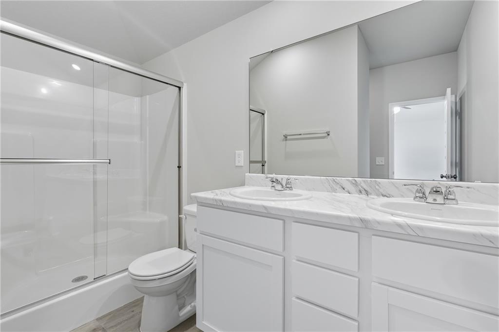 The Wright floor plan, a 3-bedroom, 2-bath home offering functional single-level living and modern finishes throughout. The open layout provides a seamless flow between the main living spaces, creating a comfortable setting for everyday living and entertaining. The kitchen features stylish cabinetry, ample counter space, and a layout that overlooks the living and dining areas, all with LVP flooring. The primary suite includes a spacious bedroom, an attached private bath with a double vanity, walk-in shower, and a generously sized walk-in closet. Two additional bedrooms and a full bath provide flexibility for guests, work-from-home space, or hobbies. A covered back patio is a great touch for relaxing outside and enjoying the extra yard space provided by the corner lot.