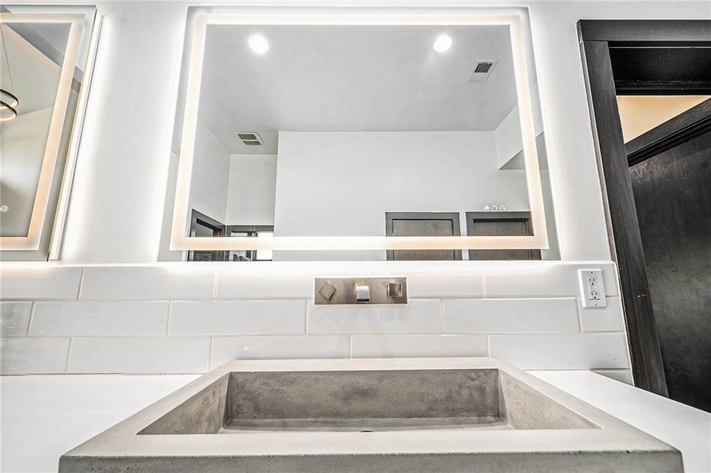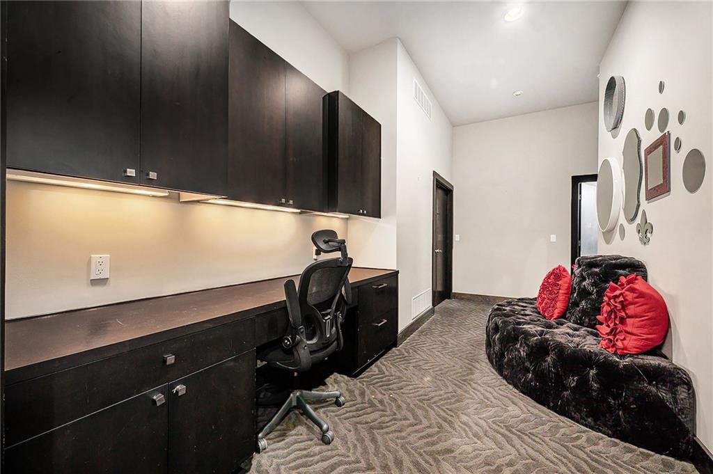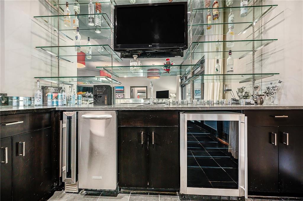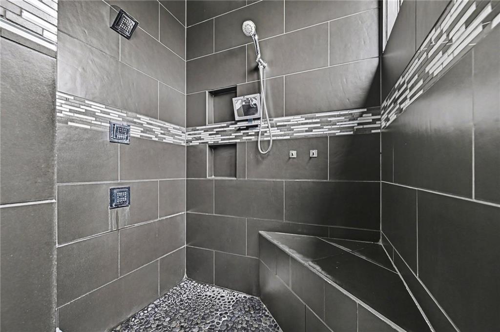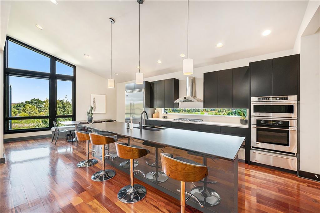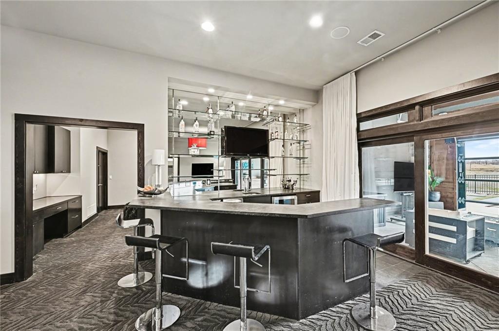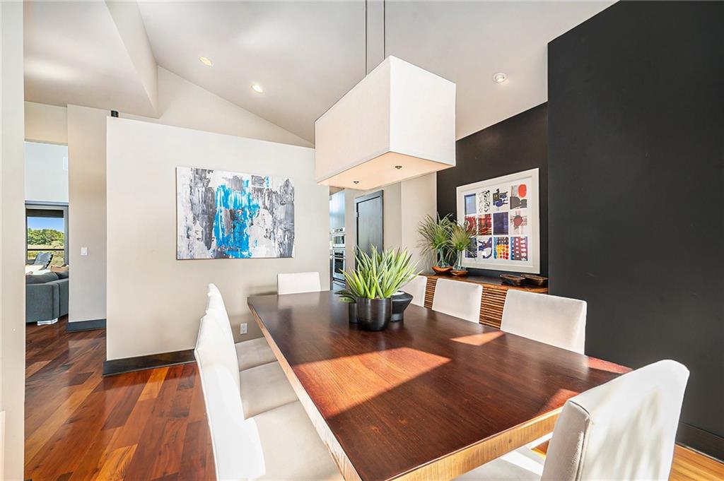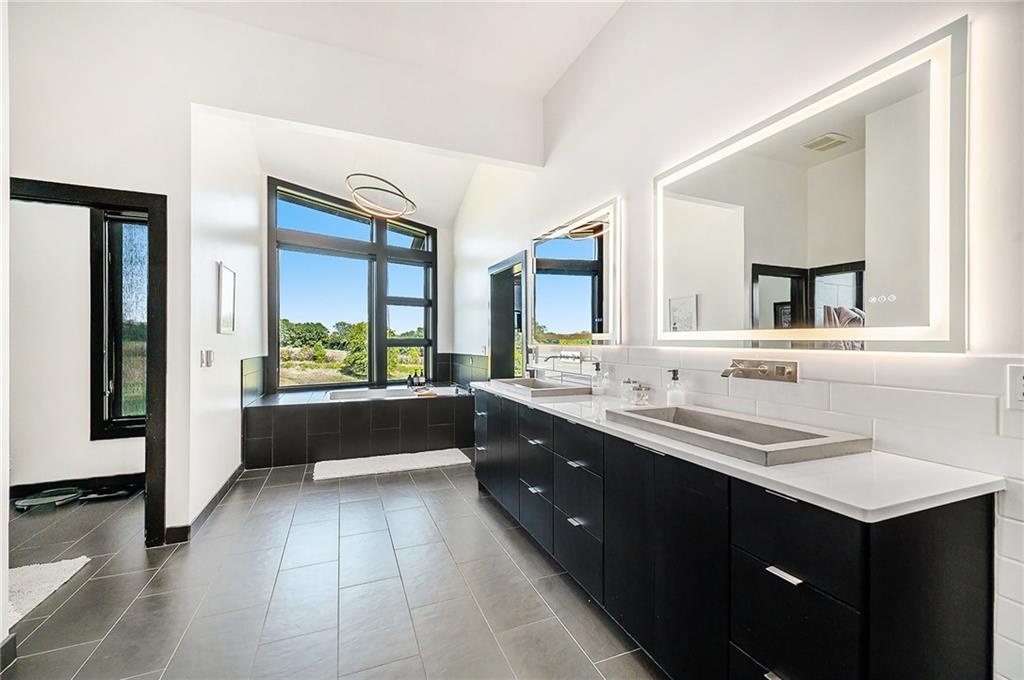 New Roof - Modern Golf Course Retreat w/ Resort-Style Outdoor Living, a striking contemporary residence with open-concept design & exceptional golf course views, ideally positioned in a quiet cul-de-sac along the 10th fairway. This impressive home blends architectural sophistication with everyday comfort. The cedar and stucco front elevation sets the tone for the distinctive design found throughout. Inside, the main level showcases Brazilian Koa hardwood flooring, expansive living spaces, and a dramatic stone fireplace wall anchoring the great room. A stunning 20-foot panoramic door system seamlessly connects the interior to the covered outdoor living area, creating effortless indoor-outdoor flow. The recently remodeled chef’s kitchen is both stylish and highly functional. A walk-in pantry, formal dining room, and charming breakfast room with built-in bench seating complete the space. The main-level office offers built-ins and french glass doors for privacy, ideal for working from home. The luxurious primary suite provides a peaceful retreat, featuring three closets, a spa-inspired bath with soaker tub overlooking the golf course, dual vanity with concrete sinks, large shower, and direct deck access for evening relaxation. The suite also includes a convenient stacked washer and dryer hookup. Designed for entertaining, the lower level offers a spacious recreation room with custom lighting, plus a stylish wet bar. A dedicated golf simulator room provides year-round practice or can easily convert into a fitness studio. Three architecturally interesting en-suite bedrooms, each with walk-in closets, provide comfort and privacy for family or guests. The lower level also features a large laundry room with cabinetry, plus a hallway study area with built-ins. The outdoor amenities continue with a 30’ x 14’ fiberglass heated pool with chiller, turf lawn, in-ground trampoline, hot tub, and beautifully designed paver patio with a garage-style opening wall for incredible views.