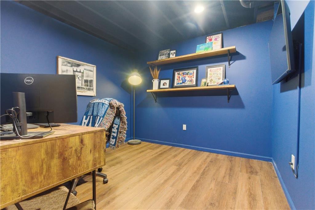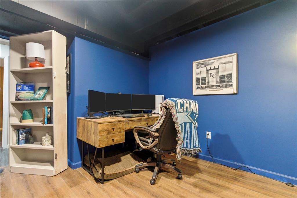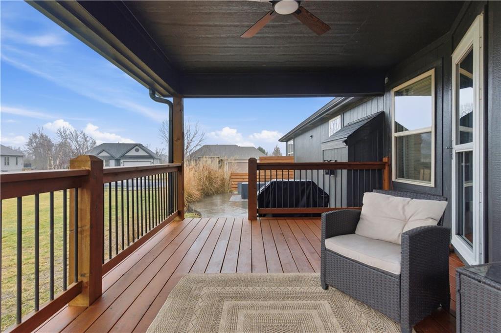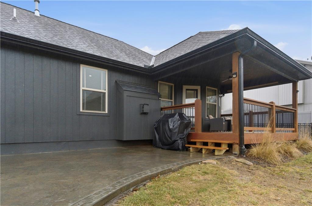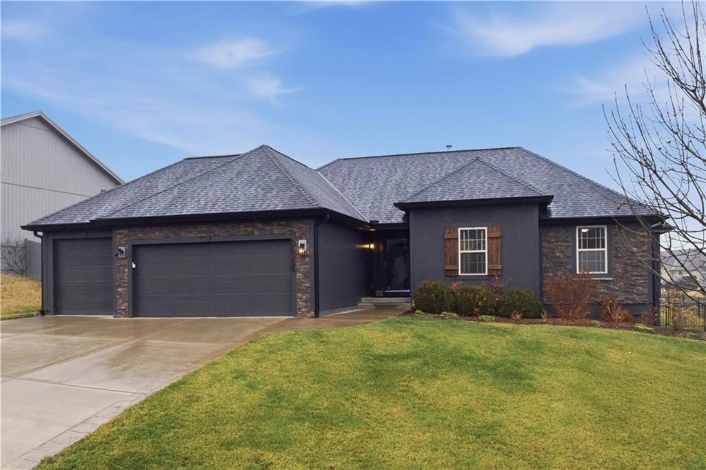 TRUE RANCH in the heart of Shawnee featuring 3 bedrooms on the main level and a finished lower level built for living and entertaining! THIS ONE SHOWS LIKE A NEW HOME. Step inside to an open, airy floor plan showcasing brand-new carpet and freshly refinished hardwood floors that gleam throughout the main living areas. Vaulted Great Room creates an impressive yet welcoming space, complete with a cozy fireplace and seamless flow into the kitchen and dining area — perfect for gatherings where everyone feels connected. Light-filled kitchen is designed to delight any chef, offering a generous center eat-in island, granite countertops, stainless steel appliances and abundant cabinetry. Retreat to the spacious Primary Suite featuring a relaxing soaking tub, separate shower and a large walk-in closet. Two additional bedrooms, a second full bath and a convenient main-level laundry room complete this thoughtfully designed level. Full, finished basement expands your living space with a large Family Room, spacious 4th bedroom, third full bath and a versatile bonus flex room ideal for a gym, playroom or hobby space. Don’t miss the hidden office cleverly tucked behind a bookshelf door — a true conversation piece! Step outside to the gorgeous covered deck just off the dining area and stamped concrete patio — the perfect spots to unwind or entertain. Added peace and quiet thanks to the railroad’s Silent Zone designation (since 2018) — no train horns! Located in the award-winning DeSoto School District with quick access to shopping, dining and major highways, this one truly checks every box. Recent improvements include: Newer paint (exterior/interior), carpet, hardwood floor refinish, roof and the list goes on... WELCOME HOME!