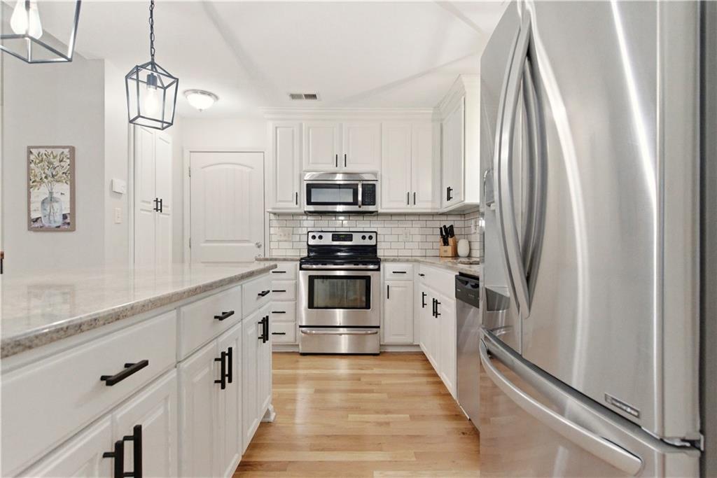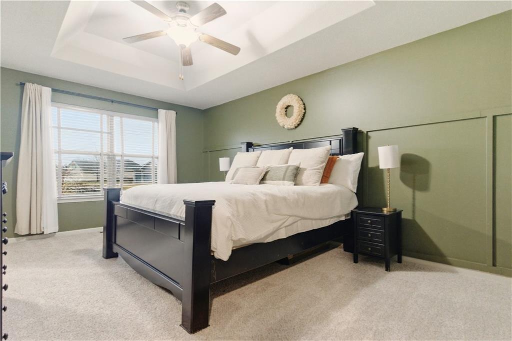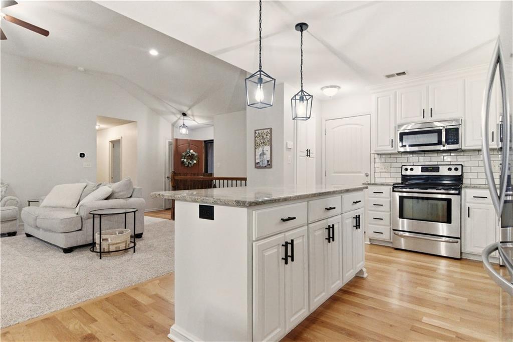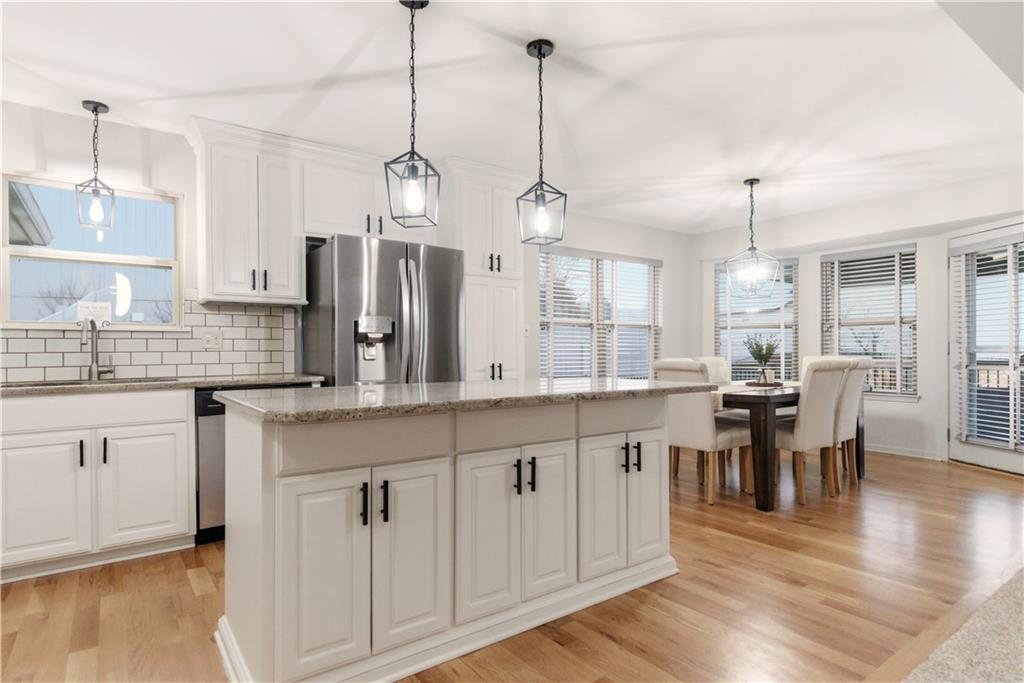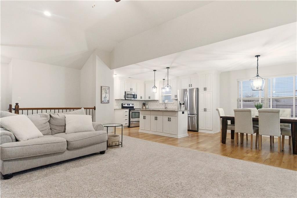 TRUE RANCH in the heart of Shawnee featuring 3 bedrooms on the main level and a finished lower level built for living and entertaining! THIS ONE SHOWS LIKE A NEW HOME. Step inside to an open, airy floor plan showcasing brand-new carpet and freshly refinished hardwood floors that gleam throughout the main living areas. Vaulted Great Room creates an impressive yet welcoming space, complete with a cozy fireplace and seamless flow into the kitchen and dining area — perfect for gatherings where everyone feels connected. Light-filled kitchen is designed to delight any chef, offering a generous center eat-in island, granite countertops, stainless steel appliances and abundant cabinetry. Retreat to the spacious Primary Suite featuring a relaxing soaking tub, separate shower and a large walk-in closet. Two additional bedrooms, a second full bath and a convenient main-level laundry room complete this thoughtfully designed level. Full, finished basement expands your living space with a large Family Room, spacious 4th bedroom, third full bath and a versatile bonus flex room ideal for a gym, playroom or hobby space. Don’t miss the hidden office cleverly tucked behind a bookshelf door — a true conversation piece! Step outside to the gorgeous covered deck just off the dining area and stamped concrete patio — the perfect spots to unwind or entertain. Added peace and quiet thanks to the railroad’s Silent Zone designation (since 2018) — no train horns! Located in the award-winning DeSoto School District with quick access to shopping, dining and major highways, this one truly checks every box. Recent improvements include: Newer paint (exterior/interior), carpet, hardwood floor refinish, roof and the list goes on... WELCOME HOME!