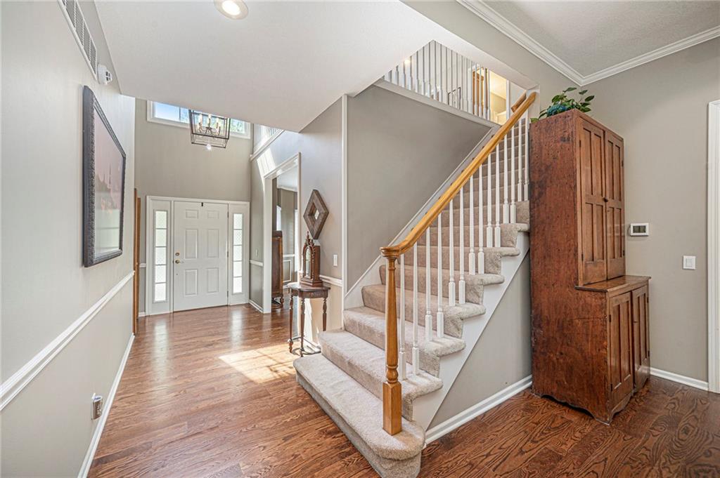 SEPARATE LIVING SPACE WITH 4TH CAR GARAGE AND SEPERATE ENTRANCE! ABSOLUTELY MOVE-IN READY! Located in the niche neighborhood of Hills of Monticello this 1.5 story home has features like no other and exquisite updates throughout! Elegant dark walnut hardwoods on the main level and a spacious owner's suite. A beautiful living room that was built for entertaining plus a second bedroom/office on the main level. A completely remodeled kitchen featuring marble counters, glass cabinet fronts, convenient kitchen island, under cabinet lighting, stainless double oven, skylight and double oven. It is TRULY A CHEF'S DREAM KITCHEN! The formal dining area is the perfect family gathering spot for holidays and special occasions. Don't miss the luxurious ensuite owner's bath with glass walk-in shower, whirlpool tub and porcelain tile floors. The upper level boasts two large bedrooms with walk-in closets PLUS a super cool "loft" area... perfect for lounging or a gaming area. Downstairs you'll find a complete separate living area with it's own garage! NEW CARPET AND PAINT in the Lower Level and ADA accessible - perfect for a live-in relative. Large three-car side entry garage on the main level. Pride of ownership shows everywhere! Newer HVAC System, elegant custom Hunter Douglas window treatments throughout the home and extensive landscaping with full sprinkler system. You will love the convenience of this location as well! Just minutes from Parkville, easy access to I-29, grocery stores, pharmacies and local restaurants. 15 minutes South of the new KCI airport and 15 minutes to downtown KC. And did I mention no Kansas City E-Tax? Make your plans to visit this home when it goes ACTIVE ON MARCH 13th!