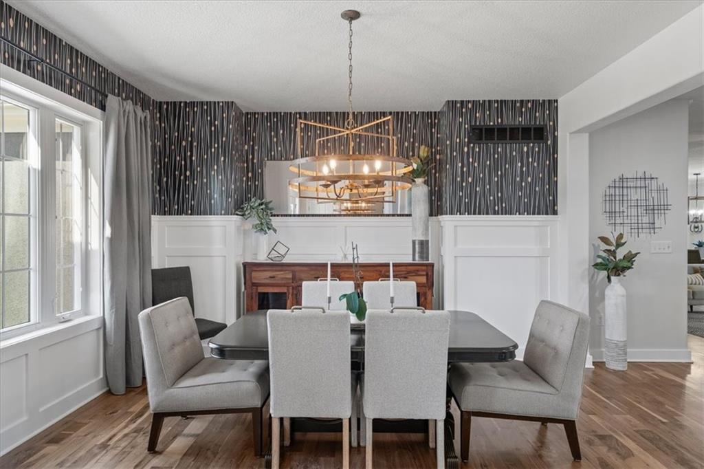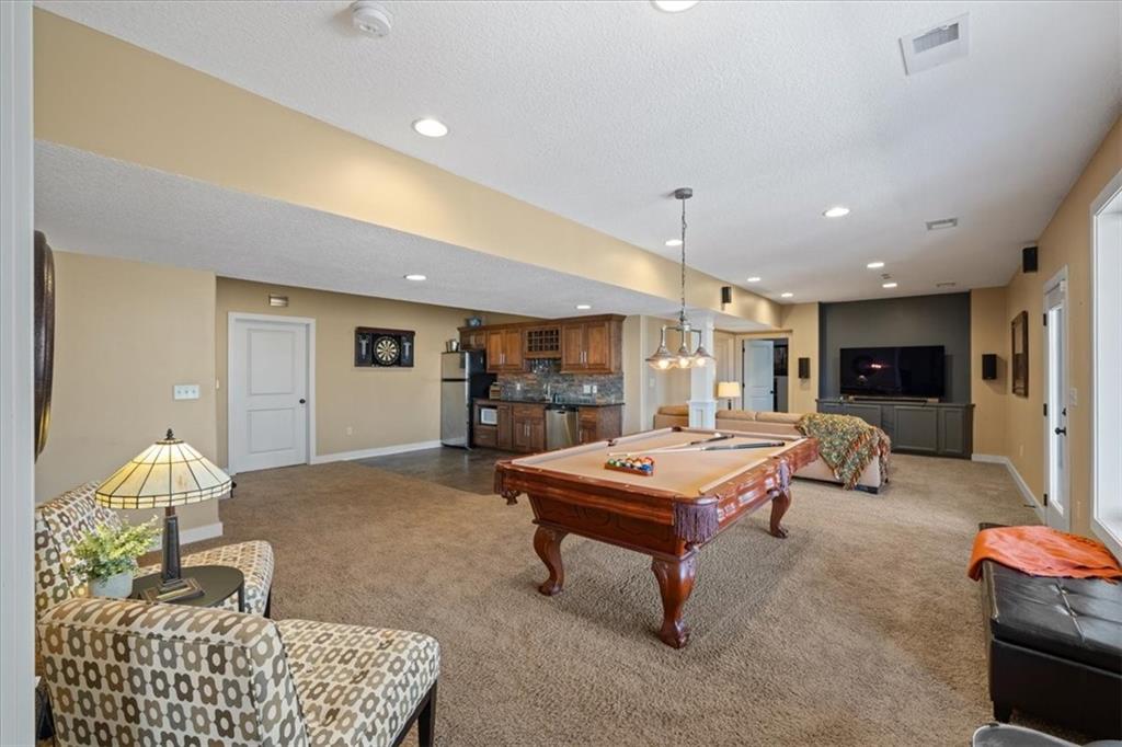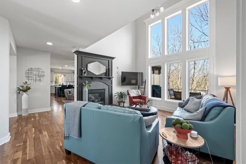 Move-in ready with a new Class-4 impact-resistant roof, finished walkout basement, and a rare fenced estate-sized lot backing to private green space—this stunning 1.5-story custom home is the total package. Step outside to pro-level landscaping: a glowing fire-pit patio, massive stamped-concrete entertaining zone, covered screened porch and new composite decking with sleek hand-built wire railing on the sun deck—providing unobstructed light and breathtaking tree views. Massive windows across the back bring the outdoors in, creating the feel of your own private rainforest retreat. Inside, every inch shows care: 2x6 exterior walls for strength and insulation, solid core doors, Andersen windows, custom cabinetry, efficient dual-zoned HVAC, Cat-5 wired network, walnut hardwoods that gleam like new, fresh exterior paint, and the Class-4 impact-resistant roof (2023) with insurance perks. The thoughtfully designed layout blends function with style. A formal dining room sets the stage for gatherings, while the heart of the home features an oversized kitchen island, gas cooktop, walk-in pantry, and abundant prep space—perfect for entertaining or casual nights. A convenient mud room keeps life organized, and a laundry chute from upstairs adds practical luxury. The main-floor primary suite offers comfort and privacy. Upstairs you’ll find a spacious loft and three generously sized bedrooms, ideal for family, guests, or home office needs. The finished basement is built for fun and functionality—complete with a wet bar, large rec/billiard room, two additional bedrooms, and a dedicated art room kids will love. Plus, the home offers impressive storage throughout. Located in the Staley attendance area with excellent highway access, this home offers space, craftsmanship, and thoughtful details throughout. A must-see!