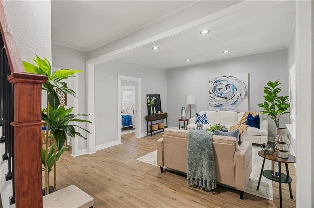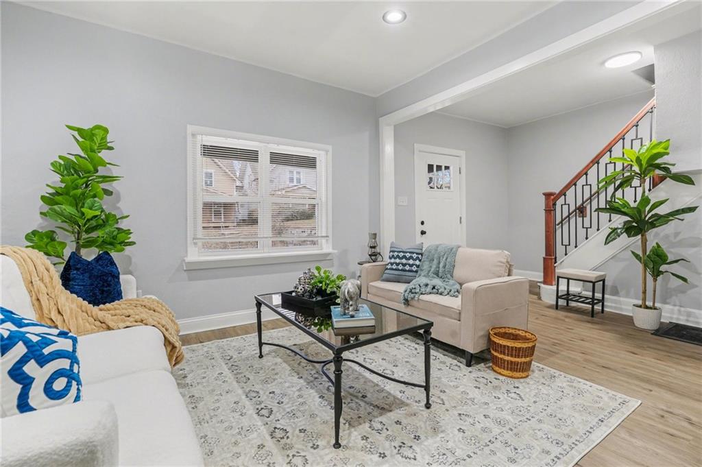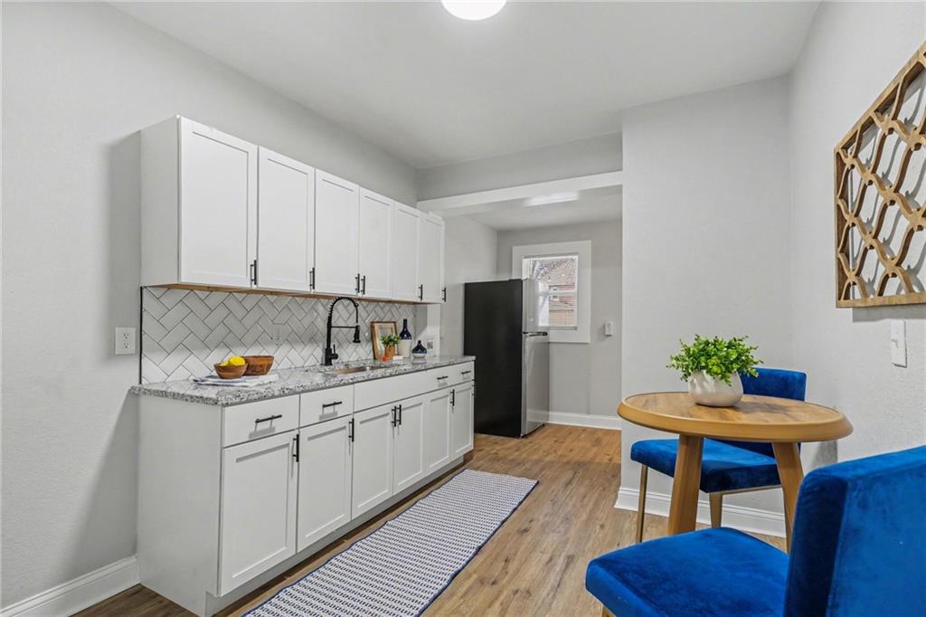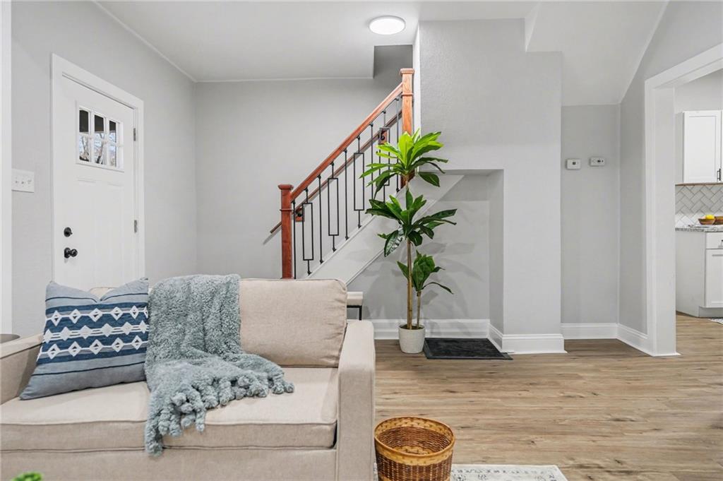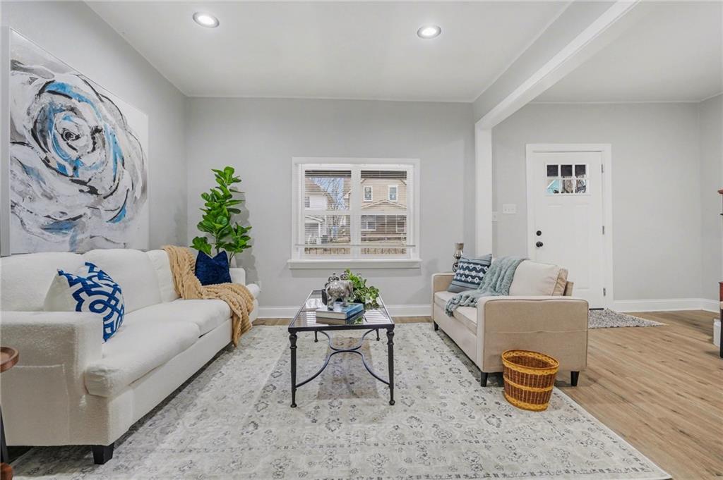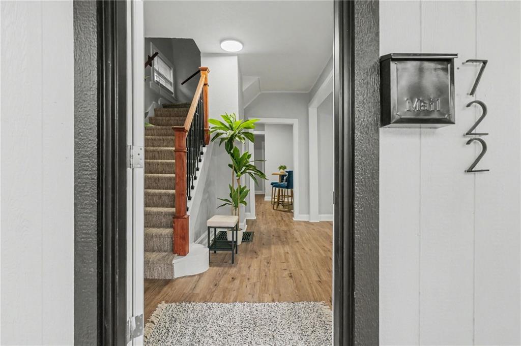 Welcome to 722 — a beautifully reimagined Victorian-style home where historic charm meets modern luxury. This fully renovated 3-bedroom, 1.5-bath gem has been taken down to the studs and rebuilt with thoughtful craftsmanship throughout, including a brand new roof. Step inside to a bright, open living area bathed in natural light, featuring luxury vinyl plank flooring, fresh neutral tones, and designer touches at every turn. The stunning chef's kitchen boasts white shaker cabinetry, granite countertops, herringbone tile backsplash, a matte black spring-neck faucet, and stainless steel appliances — a true showstopper. The spa-inspired full bath impresses with floor-to-ceiling marble tile, a soaking tub, dramatic rainfall shower head, and sleek matte black fixtures. A convenient half bath adds everyday functionality. Upstairs, three generously sized bedrooms offer plush new carpet and ample natural light. The unfinished basement provides incredible storage or future finishing potential. Outside, enjoy a freshly landscaped exterior with charming curb appeal, a detached garage, and additional storage shed — plenty of space for all your needs.