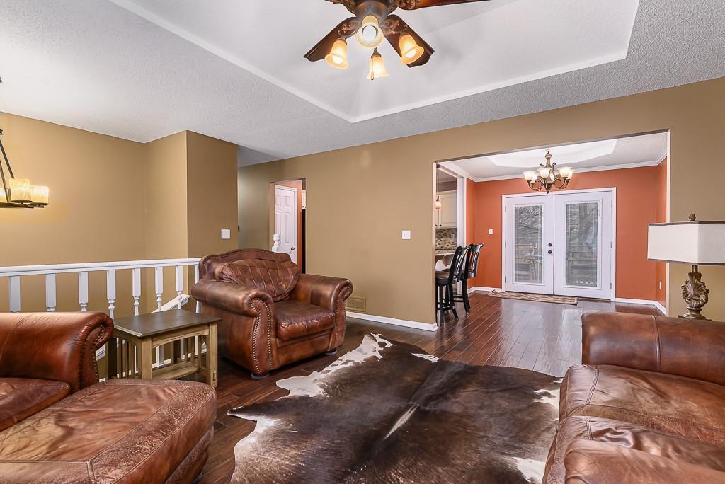 Welcome home to this beautifully updated 3-bedroom, 2-bathroom split-entry located in the highly sought-after Basehor-Linwood School District! Situated on a generous 1/3-acre fenced lot in a quiet neighborhood just minutes from the elementary school and city park, this home offers both comfort and convenience. The main level features hand-scraped engineered hardwood floors and an inviting open layout. The updated kitchen shines with white cabinetry, granite countertops, a pantry, and a full appliance package including the refrigerator, making it as functional as it is stylish. Step right out to the deck overlooking the spacious backyard, perfect for entertaining, relaxing, or enjoying the outdoors. The main-level primary suite includes a walk-in closet and easy access to a beautifully finished bathroom featuring ceramic tile flooring, a ceramic tile tub/shower, and granite countertops. Downstairs, you'll find a huge lower-level rec room ideal for a second living area, game room, home gym, or movie nights. In addition to the rec room and convenient garage access, the lower-level also features a second full bathroom and laundry area. The home also features a 2-car garage, storage shed, and fresh exterior paint, giving it great curb appeal! With modern updates, plenty of space inside and out, and a fantastic location, this home is one you won’t want to miss!