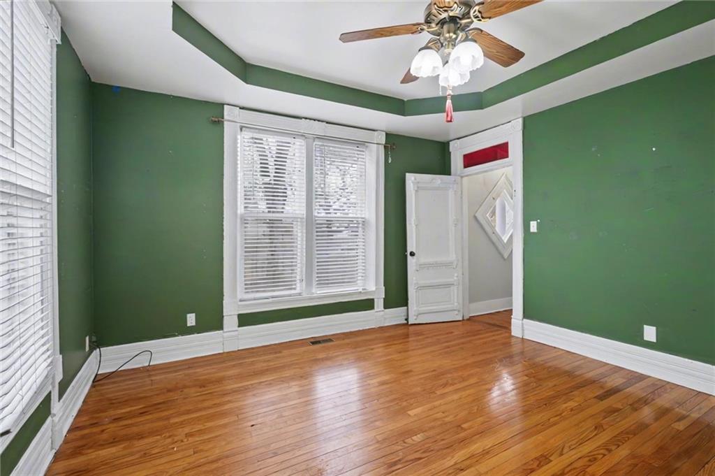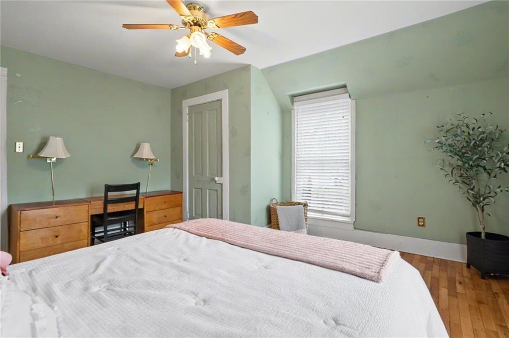 Step into this charming 1900's-built home with timeless character and thoughtful updates, including 4 spacious bedrooms and 2 bathrooms, located on a large corner lot. This home features original hardwood flooring and interior doors, along with beautiful trim details, tall ceilings, and large windows allowing for natural light throughout. The primary bedroom, full bath, and laundry/mud room are conveniently located on the main level, with an additional 3 spacious bedrooms and full bath, complete with beautiful claw foot tub, on the 2nd level. The kitchen has ample cabinets, gas range, some stainless-steel appliances, kitchen island, a detailed opening with bar stools and views into the dining room, perfect for entertaining. The large dining room has a beautiful bay window complete with cozy seating overlooking the backyard retreat. The large laundry/mud room with built-in ironing board, has additional cabinetry, space for a possible pantry, and an area perfect for crafting or a home office. Enjoy relaxing on the covered front porch sipping your morning coffee, or entertaining in the large backyard surrounded by a privacy fence, mature trees, the sounds of nature, and with space perfect for play, gardening, or outdoor gatherings. Let’s not forget the large shed for hobbies or storage, and the side carport for covered parking and additional outdoor storage. Located with easy access to Hwy 59 and Hwy 56 allowing for a short commute to Lawrence, Ottawa, KC and surrounding. AC 2 years old/Furnace approx 6 years old. PRICED under county appraised value, this adorable home is move-in ready and the perfect opportunity to bring your own personal touches.