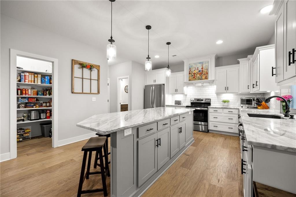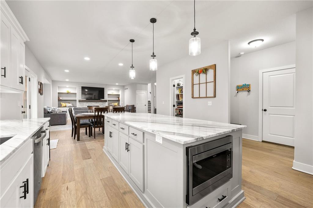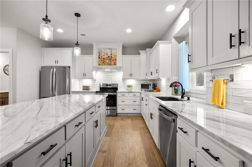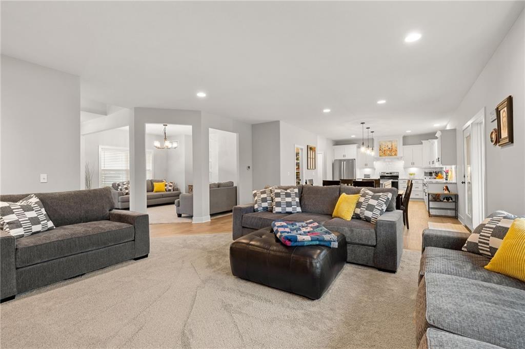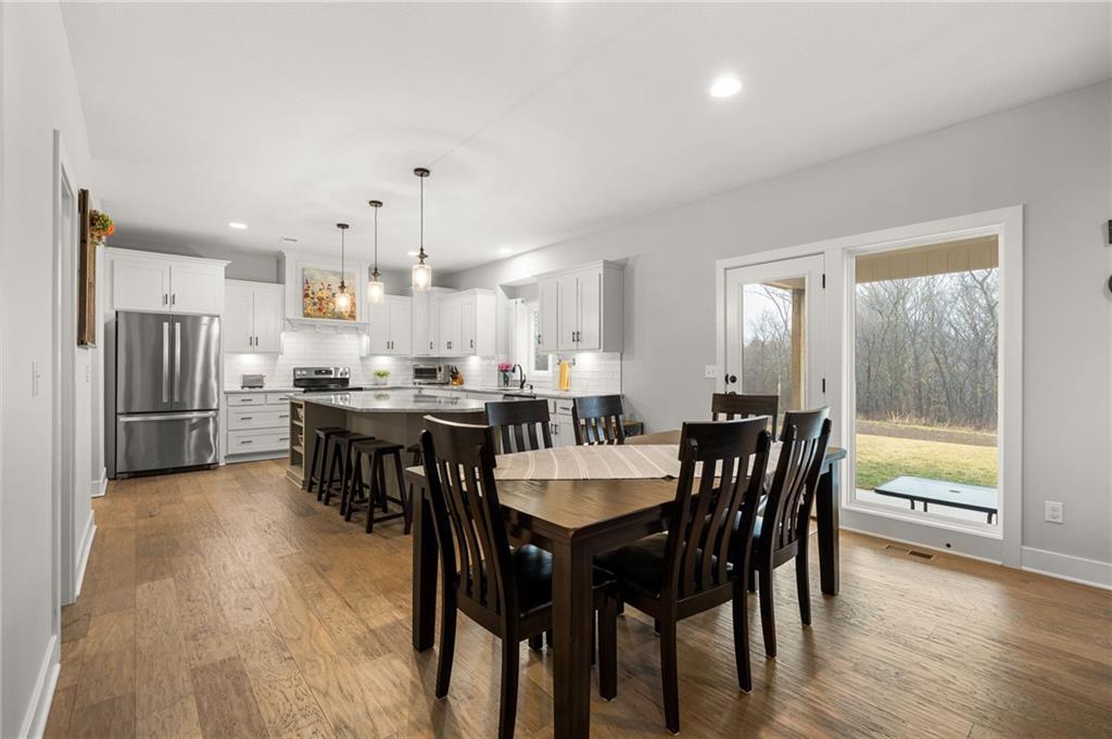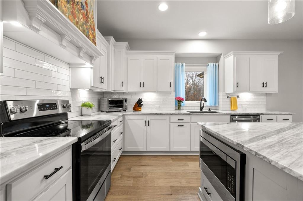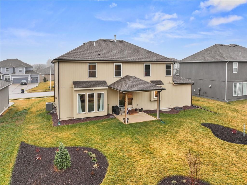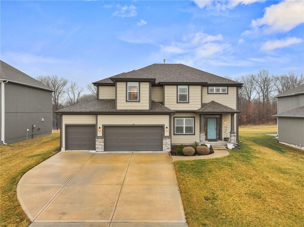 Welcome to this stunning 2-story home in Kansas City, perfectly situated on a quiet cul-de-sac backing to serene mature trees. This 4-bedroom, 3.5-bathroom residence has been meticulously taken care of, combining professional craftsmanship with a warm, inviting atmosphere within the highly sought-after Staley High School boundaries. The open floor plan on the main level is designed for effortless transition, featuring an updated kitchen with a massive island that serves as the natural gathering spot. High-end hardwood floors and a spacious walk-in pantry complement the light-filled living area. A unique feature of this property is the 3-car garage, which includes a bonus room at the rear—offering versatile space for a workshop, hobby area, or additional storage. Step outside to the covered patio to enjoy peaceful views of the greenspace and manicured lawn, maintained effortlessly by the built-in sprinkler system. The expansive basement is a blank canvas for future equity, already stubbed for a full bath and featuring an egress window for a potential fifth bedroom or additional living suite. Located just minutes from local shopping and dining, this home offers the perfect balance of suburban tranquility and modern convenience.