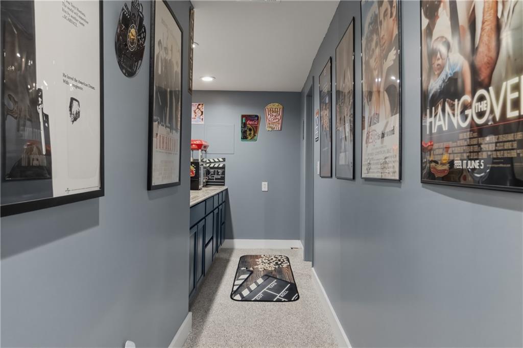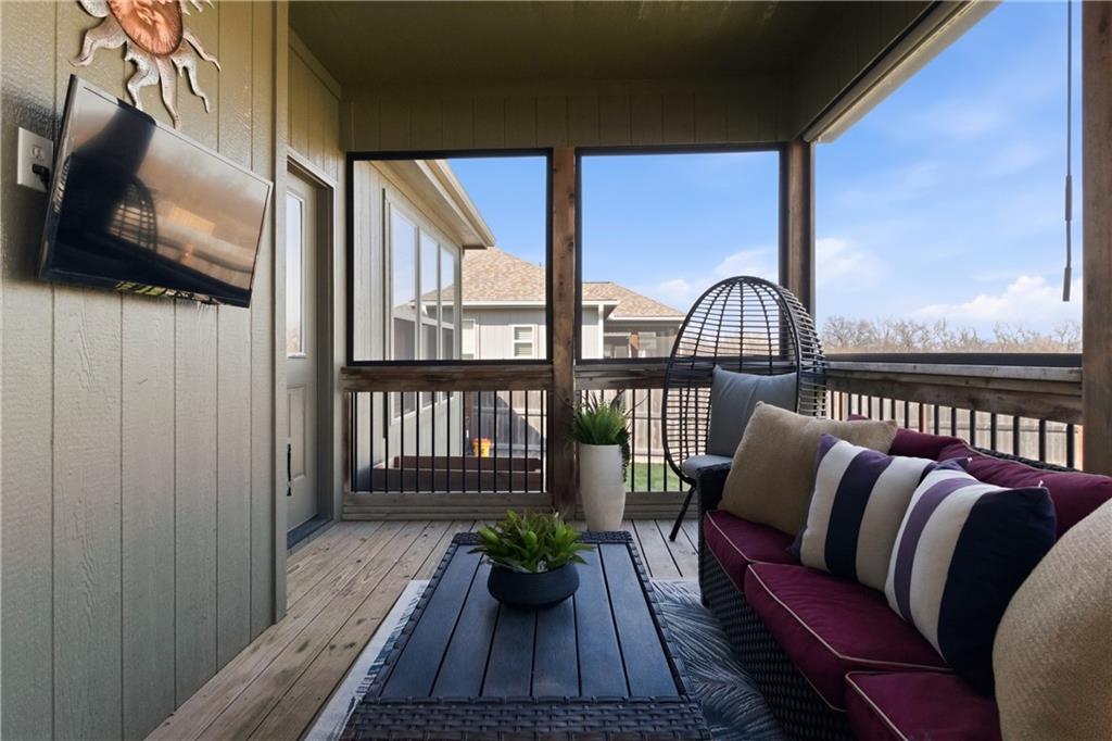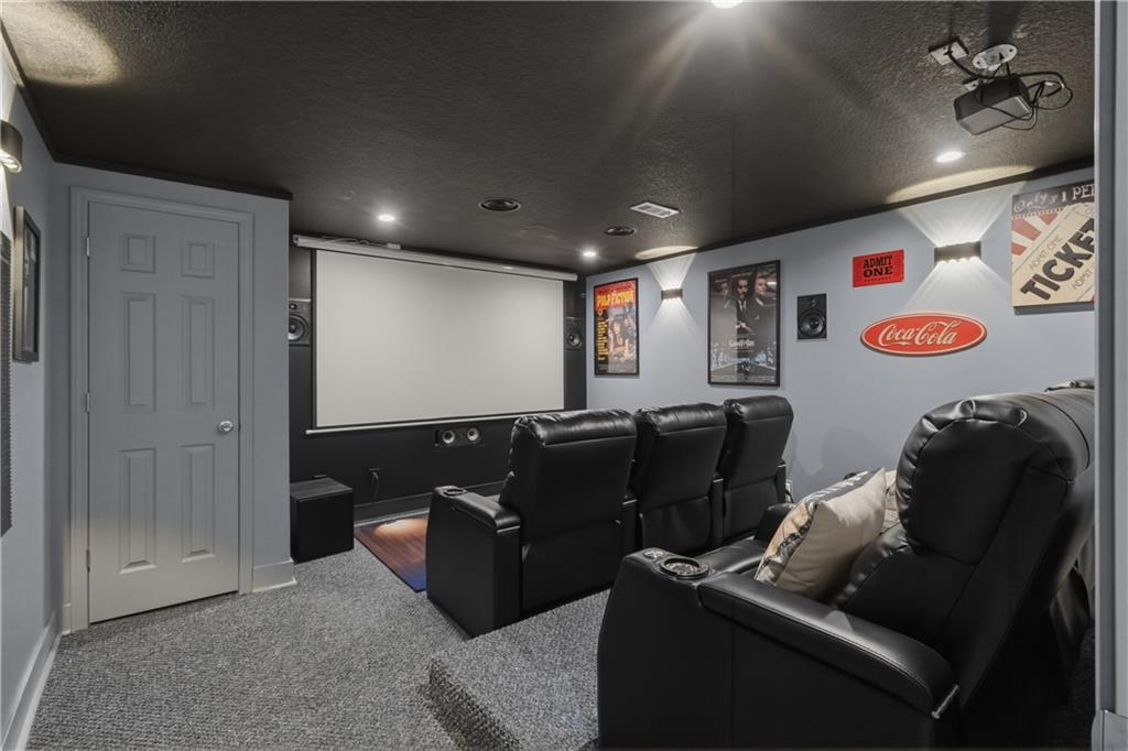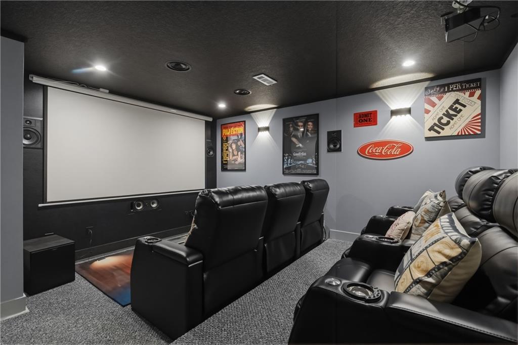 NOW SHOWING! Welcome to your dream home in the highly sought-after Sni-A-Bar Crossing! This stunning, better-than-new 4 bedroom, 3 bathroom ranch offers 3,000 square feet of impeccably designed living space. Step inside to discover a bright, open floor plan with vaulted ceilings and a spacious great room featuring a cozy fireplace. The kitchen is an entertainer's delight, boasting a large island, plenty of storage and a sunlit breakfast area. Retreat to the freshly painted main floor primary suite, complete with a generous walk-in closet.The entertainment possibilities continue in the fully finished lower level! Here, you'll find a spacious recreation room with a wet bar and a private fourth bedroom perfect for guests. Enjoy family movie nights in your dedicated home theater! Surround sound, graduated theater seating AND your very own concession stand complete with popcorn maker and nacho cheese warmer! The sellers are leaving ALL decor, projector, movie screen, surround sound equipment, electric reclining leather theater seats, rugs, pillows and ALL concession items for you to have fun at the movies! Take it outside and enjoy relaxing evenings on the screened-in covered deck or cook outs on the patio and a large, level, fenced yard for family fun. Located in the highly rated Grain Valley School District, this meticulously maintained home perfectly blends comfort, style, and entertainment in a family friendly community. So much to see in this amazing home!!