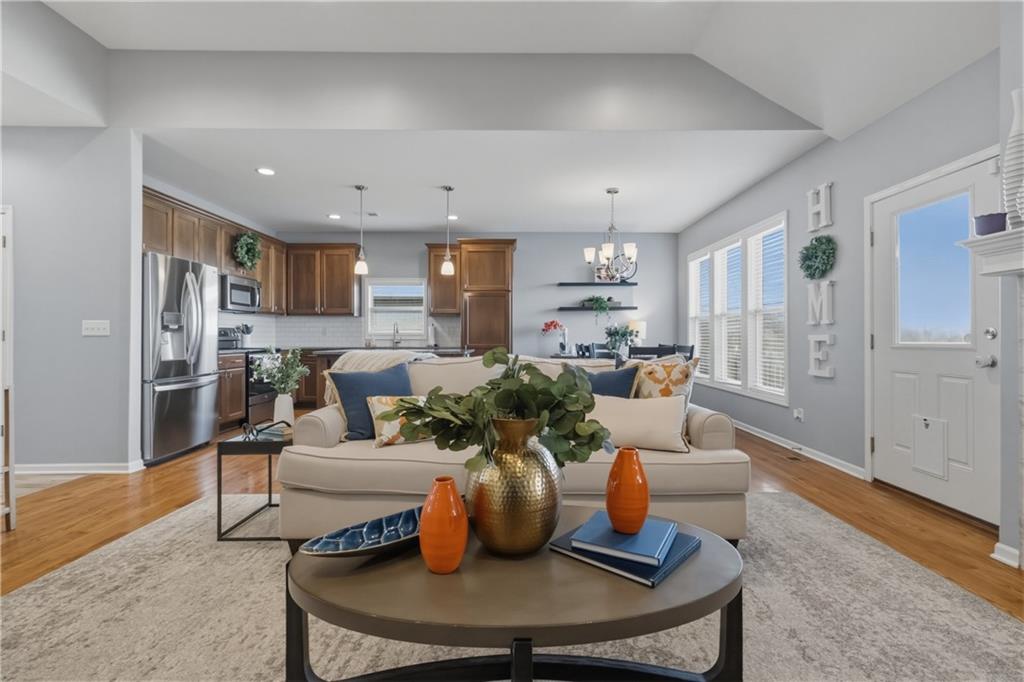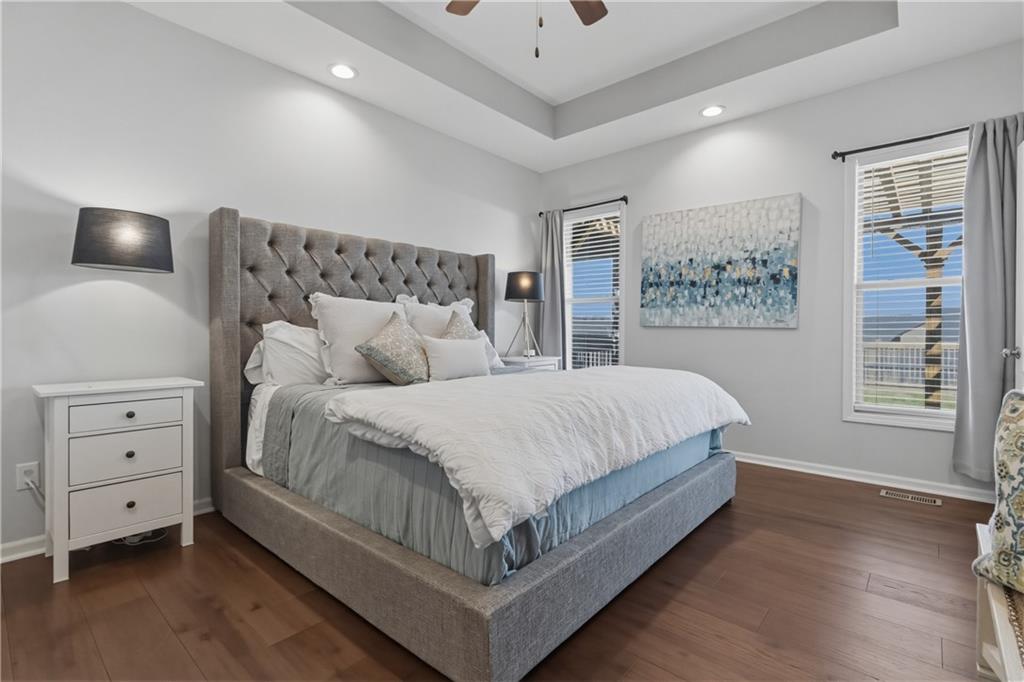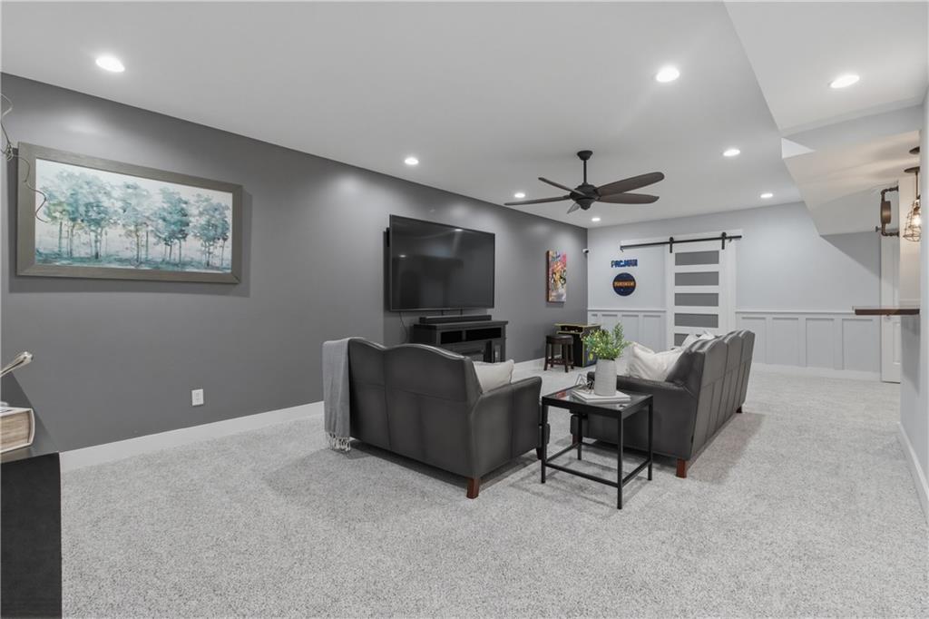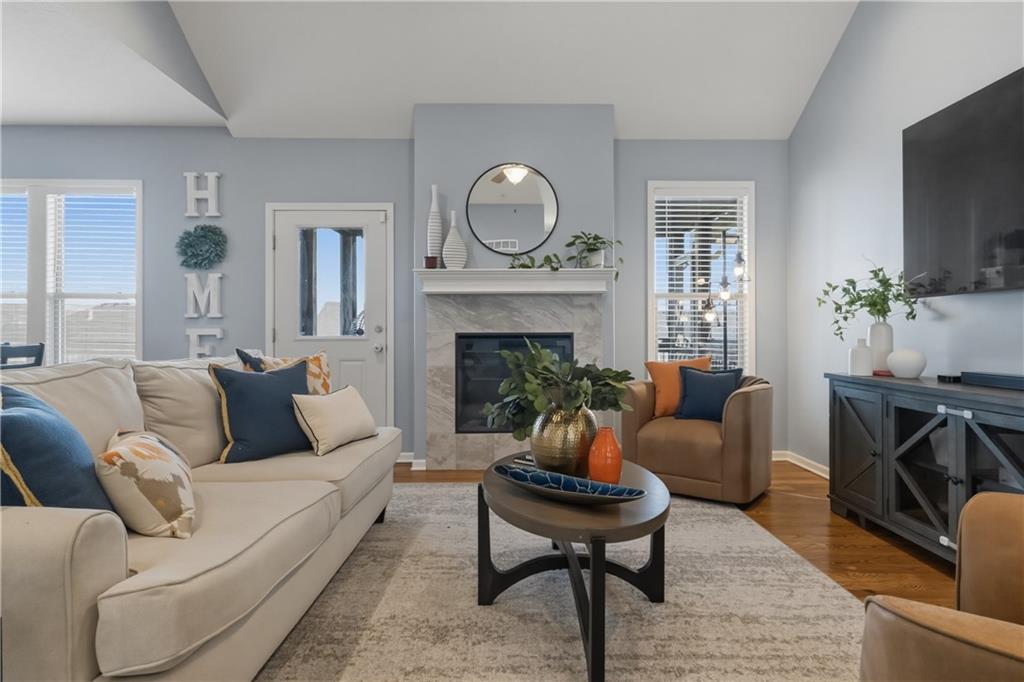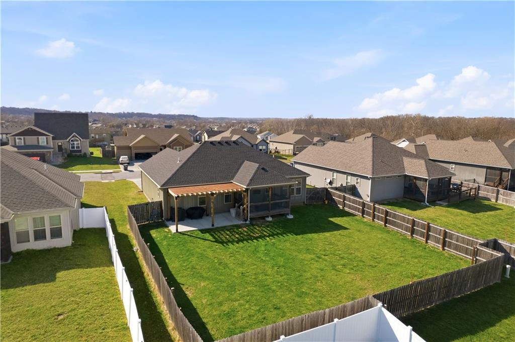 NOW SHOWING! Welcome to your dream home in the highly sought-after Sni-A-Bar Crossing! This stunning, better-than-new 4 bedroom, 3 bathroom ranch offers 3,000 square feet of impeccably designed living space. Step inside to discover a bright, open floor plan with vaulted ceilings and a spacious great room featuring a cozy fireplace. The kitchen is an entertainer's delight, boasting a large island, plenty of storage and a sunlit breakfast area. Retreat to the freshly painted main floor primary suite, complete with a generous walk-in closet.The entertainment possibilities continue in the fully finished lower level! Here, you'll find a spacious recreation room with a wet bar and a private fourth bedroom perfect for guests. Enjoy family movie nights in your dedicated home theater! Surround sound, graduated theater seating AND your very own concession stand complete with popcorn maker and nacho cheese warmer! The sellers are leaving ALL decor, projector, movie screen, surround sound equipment, electric reclining leather theater seats, rugs, pillows and ALL concession items for you to have fun at the movies! Take it outside and enjoy relaxing evenings on the screened-in covered deck or cook outs on the patio and a large, level, fenced yard for family fun. Located in the highly rated Grain Valley School District, this meticulously maintained home perfectly blends comfort, style, and entertainment in a family friendly community. So much to see in this amazing home!!