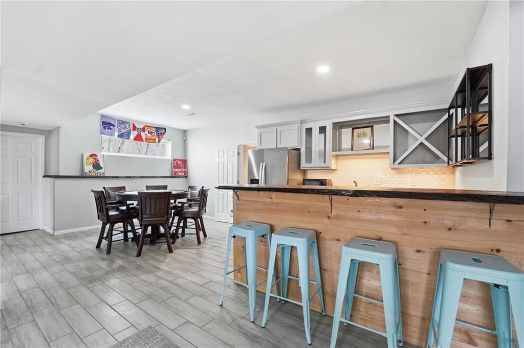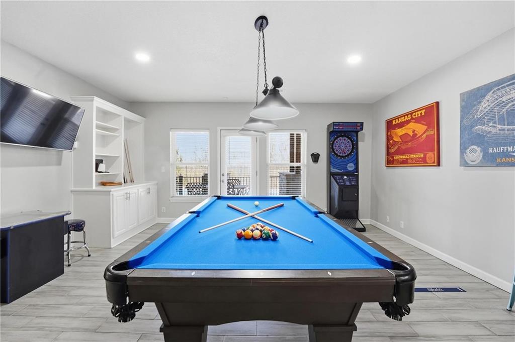 Welcome to your private slice of paradise in Piper. Tucked away at the end of a quiet cul-de-sac, this rare 1-acre walkout estate is surrounded by expansive green space, offering exceptional privacy while still benefiting from city water and city sewer—a rare combination for properties of this size. Designed for both everyday comfort and unforgettable entertaining, the home features a unique floor plan with 5 true bedrooms and 2 non-conforming in basement as well as 5.5 bathrooms. The main level includes a spacious, updated kitchen with walk-in pantry, a versatile library or office, and a luxurious primary suite plus three additional bedrooms for convenient main-floor living. Just upstairs, the bonus loft brings the fun with a Golden Tee golf game and indoor putting green, creating the perfect hangout space for friendly competition and entertaining. The walkout lower level is built for hosting with space for a fitness studio, theater area, arcade/game room, and full wet bar, along with additional bedrooms! Step outside and experience a true backyard retreat. Outdoor living shines with a wraparound porch featuring beautiful wood details, a screened-in deck with fireplace, and impressive stone and concrete craftsmanship throughout. The in-ground swimming pool, outdoor kitchen, pizza oven, and firepit create a backyard setting designed for relaxing, entertaining, and enjoying the surrounding green space. This is more than a home—it’s a lifestyle.